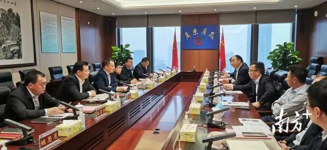 在惠州市,周小勇来到粤港澳大湾区(广东惠州)绿色农产品生产供应基地,详细了解基地绿色农产品加工、跨境农产品集散和仓储物流中心等项目及农产品流通、冷链物流、粮油储备加工等优势业务。周小勇表示,平远农产品资源丰富,是中国油茶之乡、广东脐橙之乡,有脐橙、东石花生、客家炒绿、石斛、灵芝、三华李等全国名特优新农产品,希望粤港澳大湾区(广东惠州)绿色农产品生产供应基地发挥自身优势,与平远在农产品批发、仓储冷链配送、生鲜加工、跨境服务等方面开展交流合作。