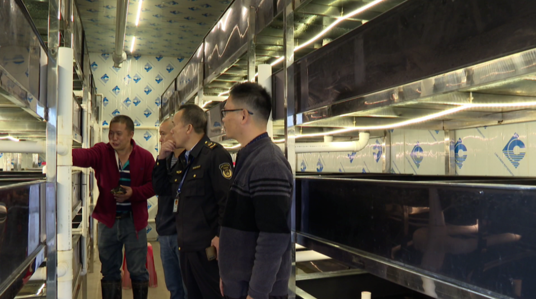 而在春兴白玉蜗牛养殖基地对面,养殖石金钱龟的梅州市天源达生态农业发展有限公司温室内,空气能火力全开,让温度常期保持在30度左右,上万只小龟在适宜的温度中觅食、成长。农技人员向公司技术人员面授生态养龟技术,并发放无公害水产养殖技术和水产养殖规范用药安全汇编等相关资料,助力幸福“龟”来。