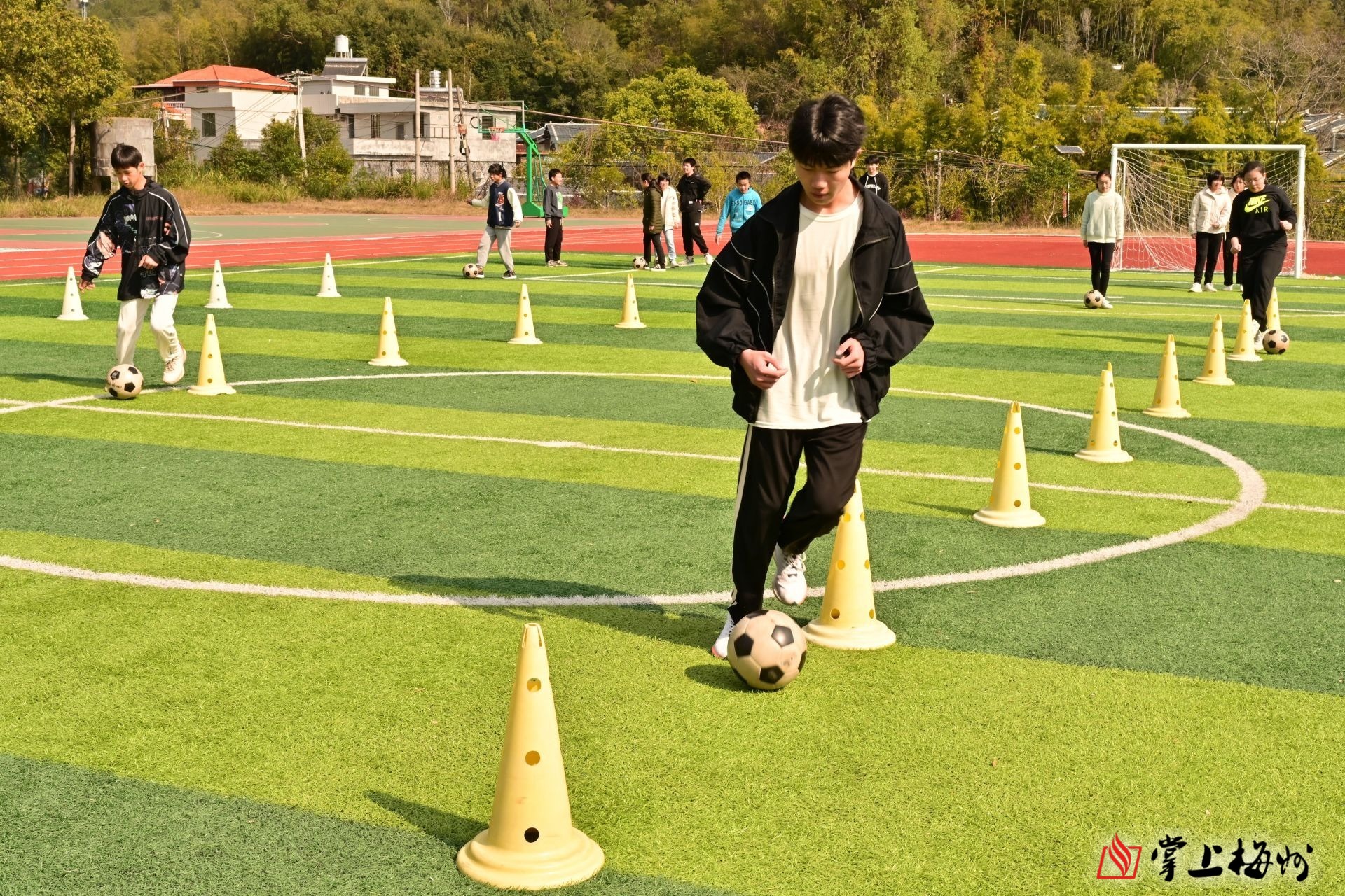 平远县差干学校开展“大课间”活动,这是今年开设的踢足球项目。(钟小丰 摄)