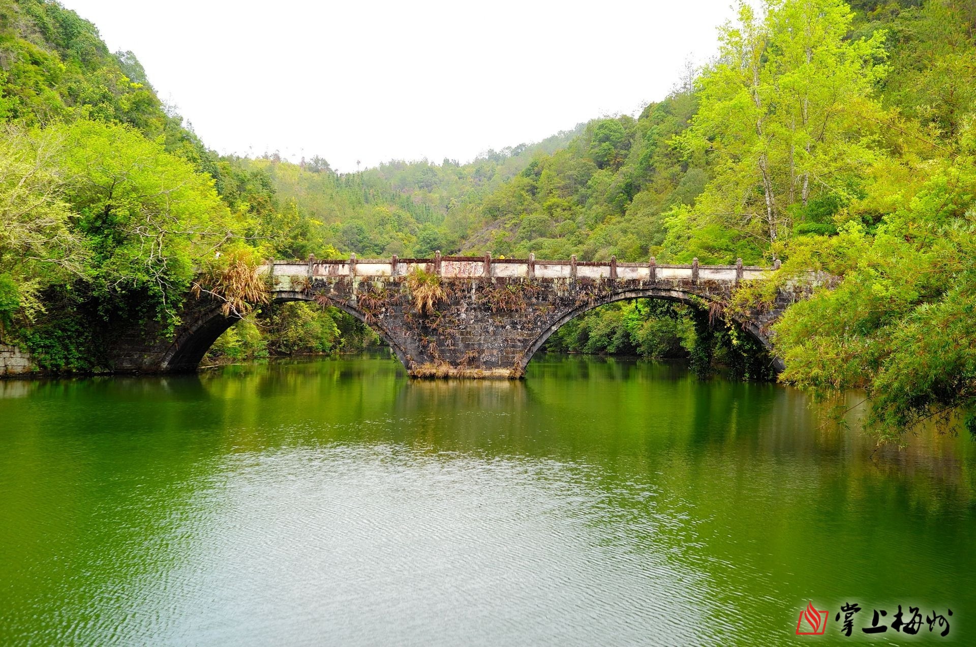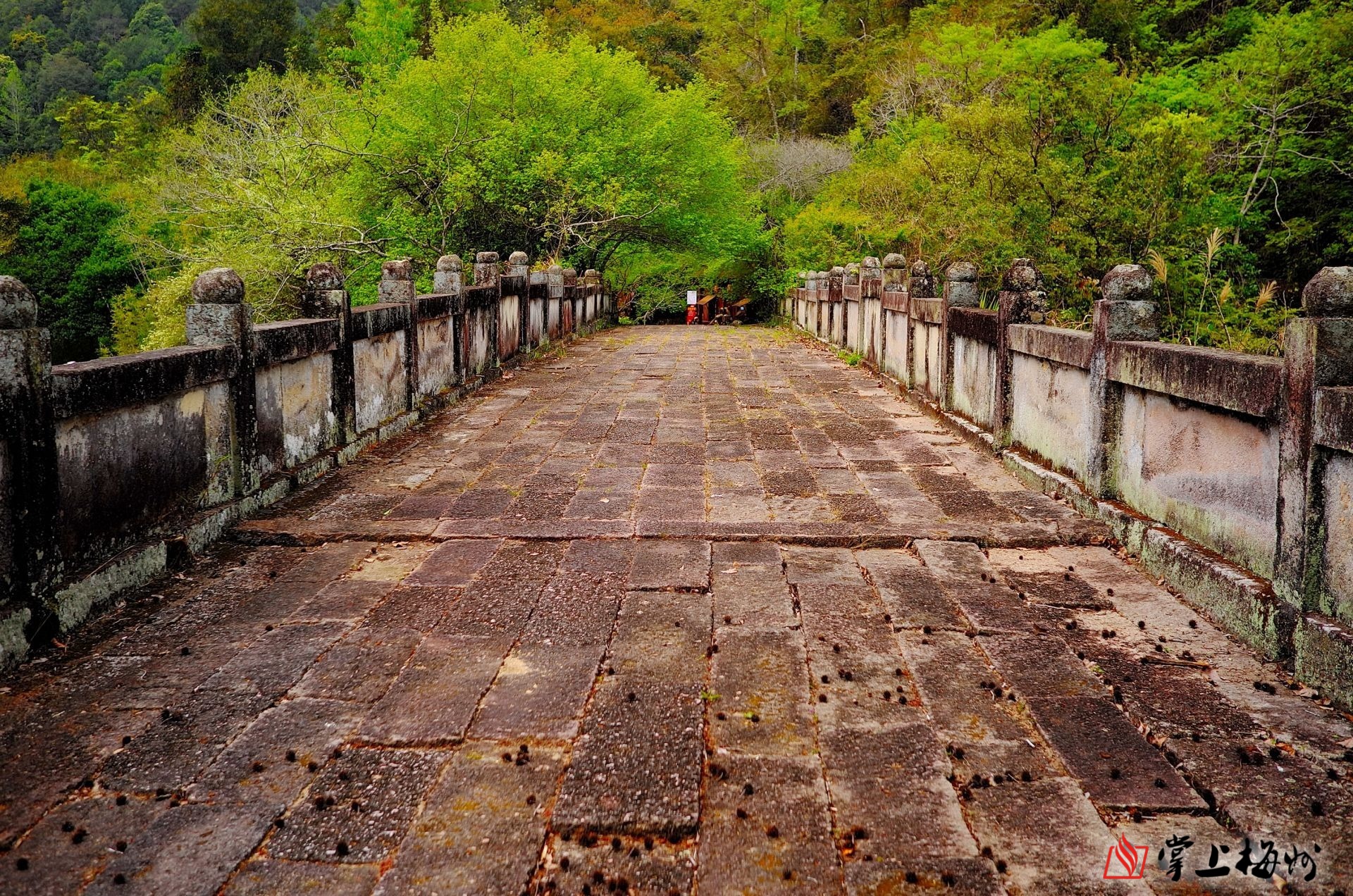 此行最靓丽的风景要数松溪古桥。这座长约60米、高12米的石桥矗立在松溪古道中段,用大块花岗岩砌成,尽显古朴大气。凭栏望去,可见两岸青山葱翠、蓝天悠远,桥下碧水清冽、波光粼粼。记者仔细观察还发现,桥面两边原有20根葫芦顶石柱,如今柱顶已尽数断裂。据史料记载是清朝同治年间太平天国官兵为显示军威而用大刀劈断。这为松溪古桥蒙上更厚重的历史色彩。