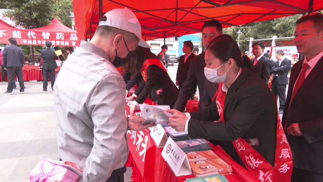 来自平远县金融系统的11家单位也在现场联合开展3·15国际权益日“权利 责任 风险”主题宣传活动,与群众积极互动,强化风险防范意识,守护金融消费者“钱袋子”。