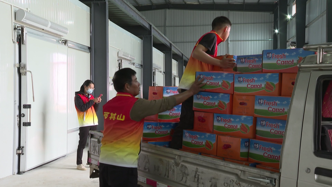 在位于平远县大柘镇东富岭占地四千平米的可其山农电商集配基地,工作人员将新鲜采收的胡萝卜、包菜、洋葱等集中在冻库分拣、打包、装车,通过冷链物流运往深圳装船发往迪拜、新加坡等国家。