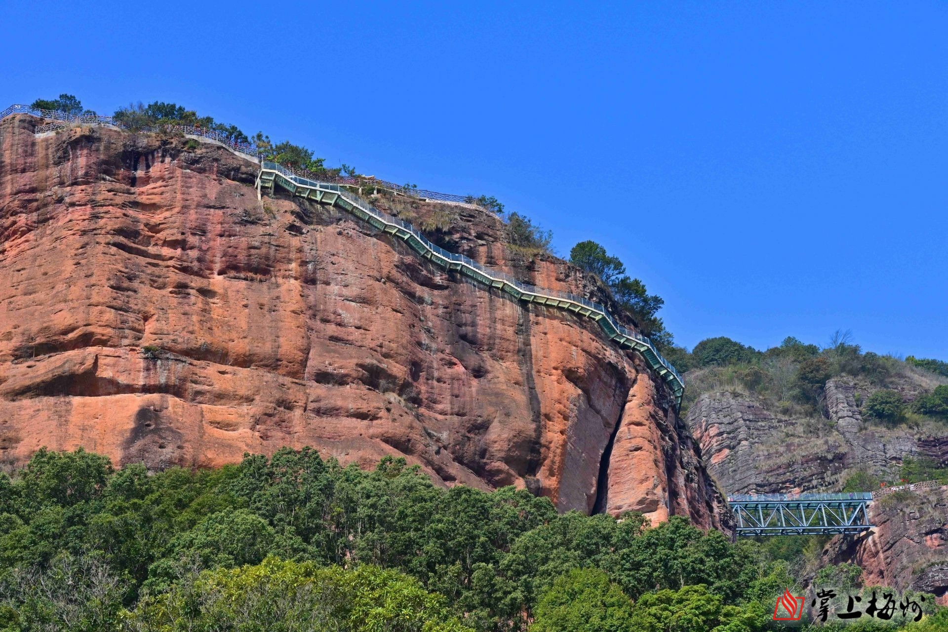 悬崖壁上的玻璃栈道。