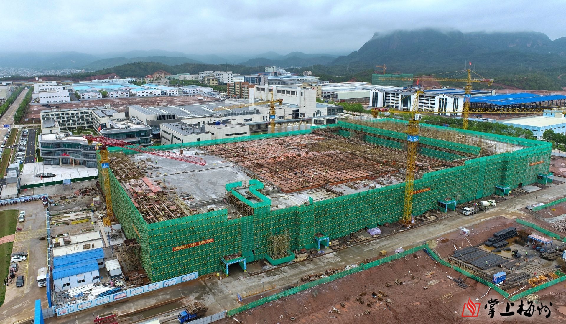 近日,雨后初霁的梅州平远高新区弥漫着泥土芬芳,走进广东盈华电子材料有限公司年产3600万张高性能覆铜板项目二期建设现场,只见黄土地上,两层楼高的车间厂房初具规模,几台吊车挥动着机械臂,施工车辆来回穿梭,200多名工人头顶着白色的头盔加快施工,一派建设繁忙的景象。自去年12月开工建设以来,该项目已完成投资近亿元,朝着“一年内投产”的目标稳步推进。