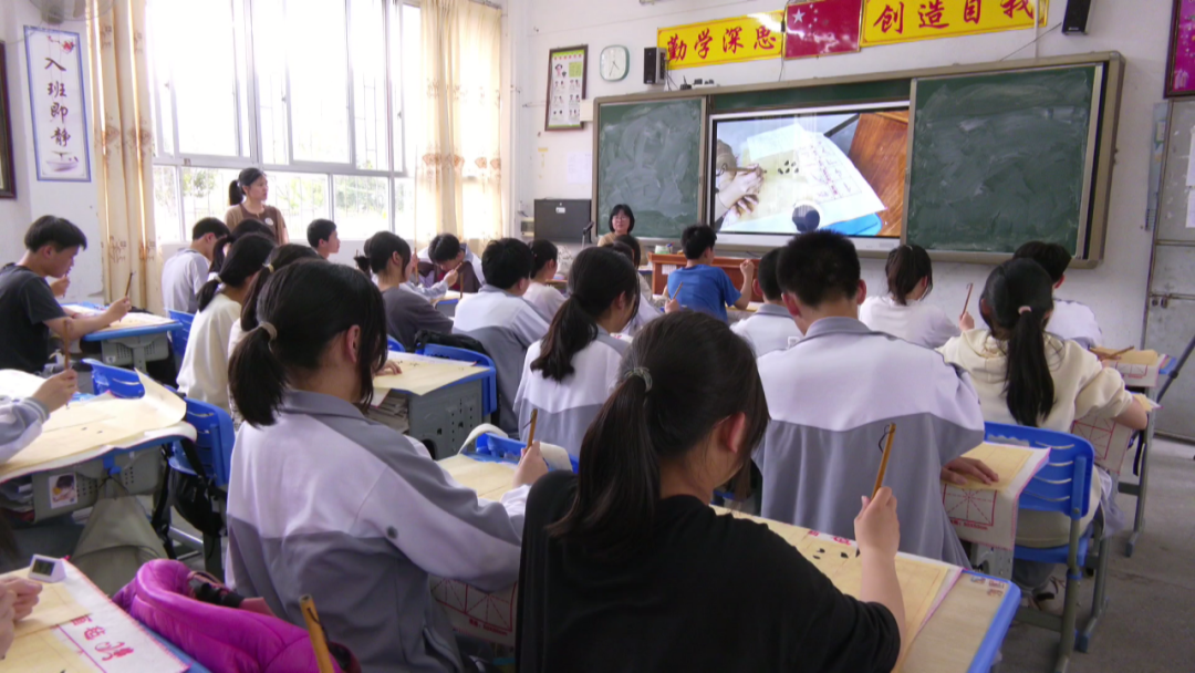 活动现场,文艺志愿者带来了精心准备的课程《初探北方曲艺和客家曲艺》《学唱五句板》《感受客家山歌魅力,学唱客家山歌号子》《书法艺术体验》——书写社会主义核心价值观,团扇绘画《春天》等,通过集中展演展示和课堂讲学的形式,传授梅州非物质文化遗产——客家山歌以及书法、绘画等技艺技巧。学生们听、赏、唱、学、画融为一体,沉浸式感受和体验这些“绝艺绝技”。在文艺志愿者的悉心教导下,山区孩子们的脸上洋溢着无比开心的笑容。