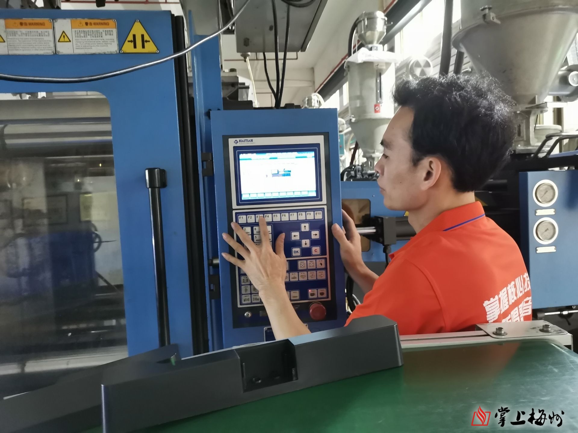 五一前夕,程华龙正在车间指导着徒弟如何辨别机器是否正常运作,“你看产出的产品表面光滑,颜色也很均匀,说明我们的机器是正常运转的。”程华龙边检查产品边讲述着产品表面留痕、尺寸不稳定、脱模困难等缺陷的原因。他告诉徒弟,如果注塑压力太高、保压时间太长、模温太高、模板变形都会导致脱模困难。出现产品异常,要先确定原因,才能有针对性地进行调试。不仅如此,他还提醒道,一定要认真查看每一个产出产品,遇到异常才能及时调整设备,以免增加不必要的成本。“师傅对工作很认真负责,技术也很好,不懂的他都会很耐心教。”程华龙的学徒何小清说,自己之所以能够上手快,离不开程华龙的耐心指导。