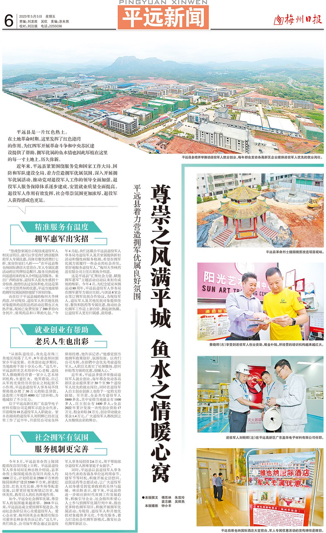 近年来,平远县紧紧围绕服务党和国家工作大局、国防和军队建设全局,着力营造拥军优属氛围,深入开展拥军优属活动,推动党对退役军人工作的领导全面加强,退役军人服务保障体系逐步建成,安置就业质量全面提高,退役军人作用有效发挥,社会尊崇氛围更加浓厚,退役军人获得感成色更足。