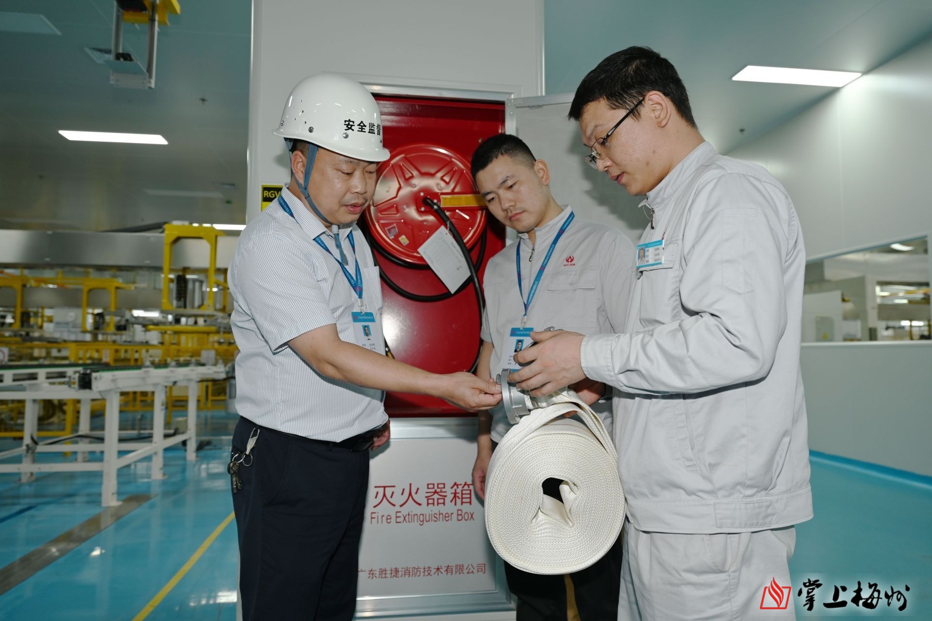 退役军人刘明辉(左)在平远高新区广东盈华电子材料有限公司任职。