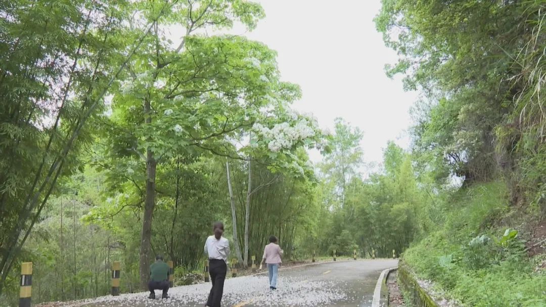 游客 杨女士:我来自揭阳,在抖音上刷到的,油桐花我觉得很漂亮,刚刚拍了很多照片。
