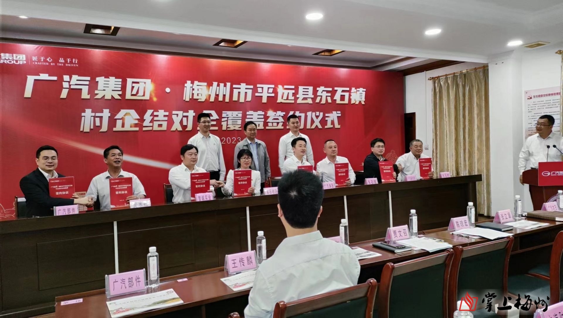5月12日,在驻东石镇帮镇扶村工作队的积极推动下,牵头帮扶单位广汽集团与东石镇举行村企结对全覆盖签约仪式,举行广汽集团向东石镇捐赠帮扶资金、新能源电动车便民充电站、乡村数字化治理及水利提升惠民设施捐赠仪式,并进行乡村振兴工作调研。广州汽车集团股份有限公司团委书记贾文召,平远县县委副书记、政法委书记陈琼宏出席签约仪式并调研。