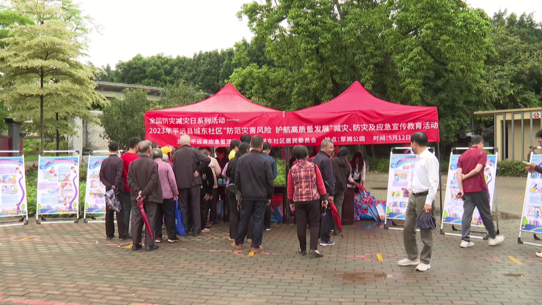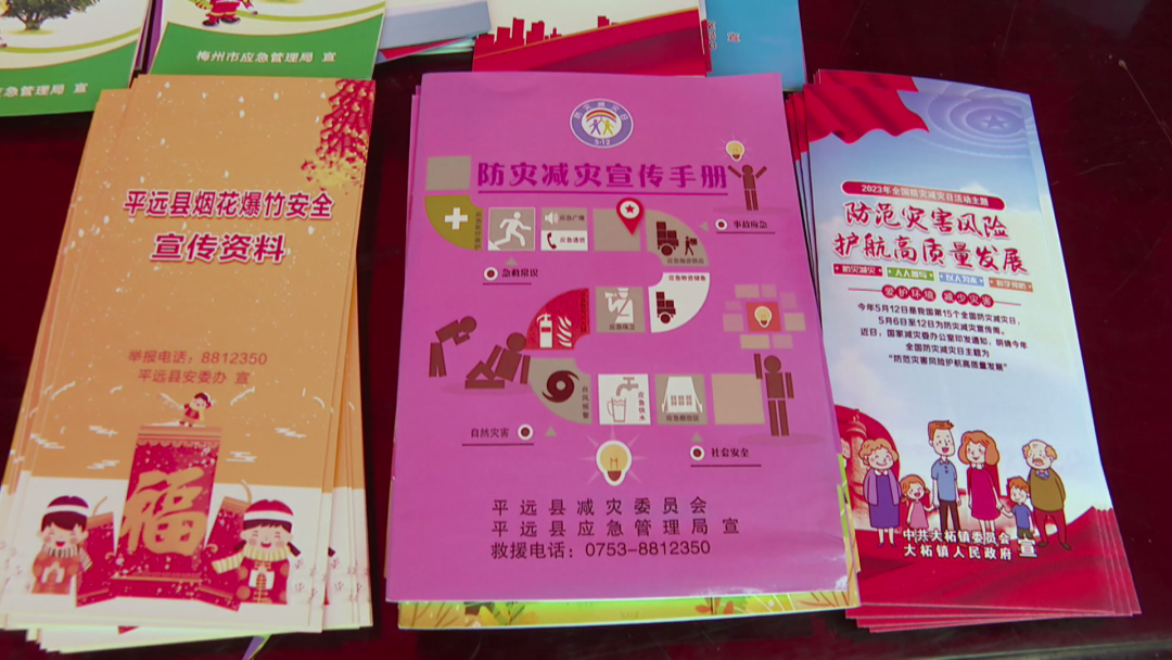 平远县应急管理局副局长谢崇浩:“今天是第15个全国防灾减灾日,主要向群众科普防灾减灾应急疏散逃生的各项防灾减灾知识,比如遇到洪水灾害懂得逃生、懂得转移到安全地带,发生火灾要疏散到安全的区域。”
