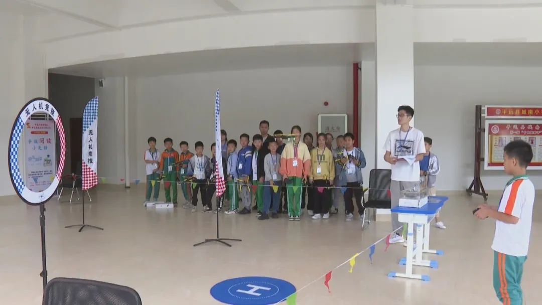 在举行开幕仪式和进行机器人舞蹈表演后,各项比赛随即拉开了帷幕。在无人机飞行技能比赛活动现场,只见一个个小选手们手持遥控器全神贯注地操控着无人机,低飞、盘旋、越障,小小的无人机在控制下灵活地在空中“起舞”。参赛选手:不要紧张,用自己的办法去操控它(无人机)。参赛选手:体验到其中的一个比赛过程的乐趣。