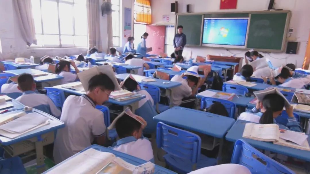 学生:我学到了防震减灾,要用书本或者是其他物品护住最重要的头部,然后迅速地跑到空旷的场地。上学期我们也是进行了地震疏散演练,现在更加熟悉了这个流程。