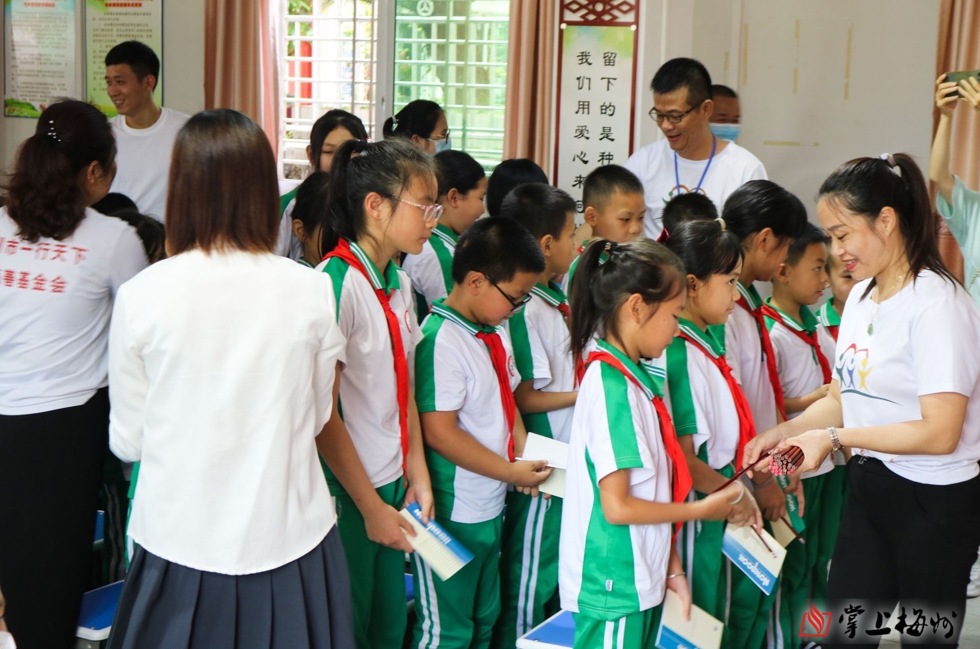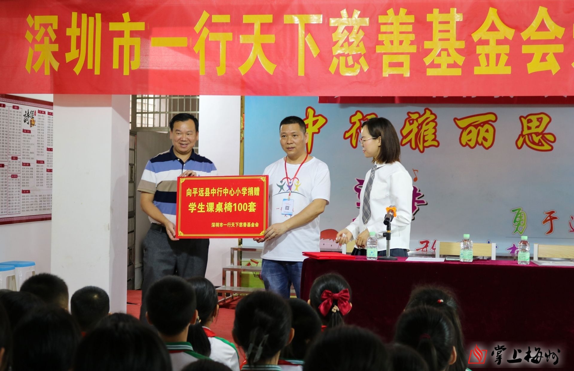 掌上梅州讯 5月19日,深圳市一行天下慈善基金会向平远县河头中心小学和中行中心小学捐赠总价值约3万元的桌凳共230套。捐赠仪式后,志愿者们还与学生进行了互动,并为中行中心小学部分优秀学生颁发了奖励金。
