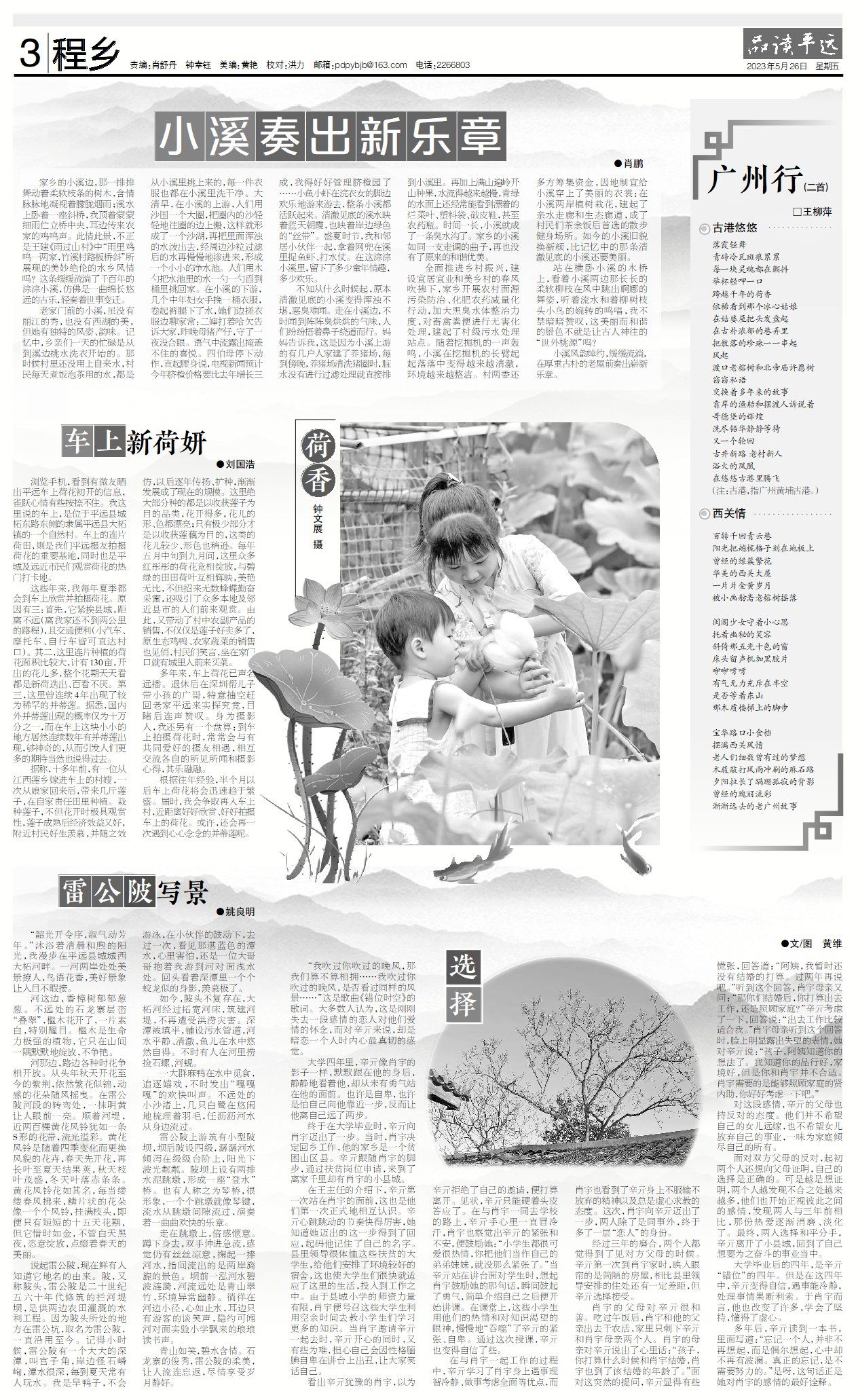 全面推进乡村振兴,建设宜居宜业和美乡村的春风吹拂下,家乡开展农村面源污染防治、化肥农药减量化行动,加大黑臭水体整治力度,对畜禽粪便进行无害化处理,建起了村级污水处理站点。随着挖掘机的一声轰鸣,小溪在挖掘机的长臂起起落落中变得越来越清澈,环境越来越整洁。村两委还多方筹集资金,因地制宜给小溪穿上了美丽的衣裳:在小溪两岸植树栽花,建起了亲水走廊和生态廊道,成了村民们茶余饭后首选的散步健身场所。如今的小溪旧貌换新颜,比记忆中的那条清澈见底的小溪还要美丽。