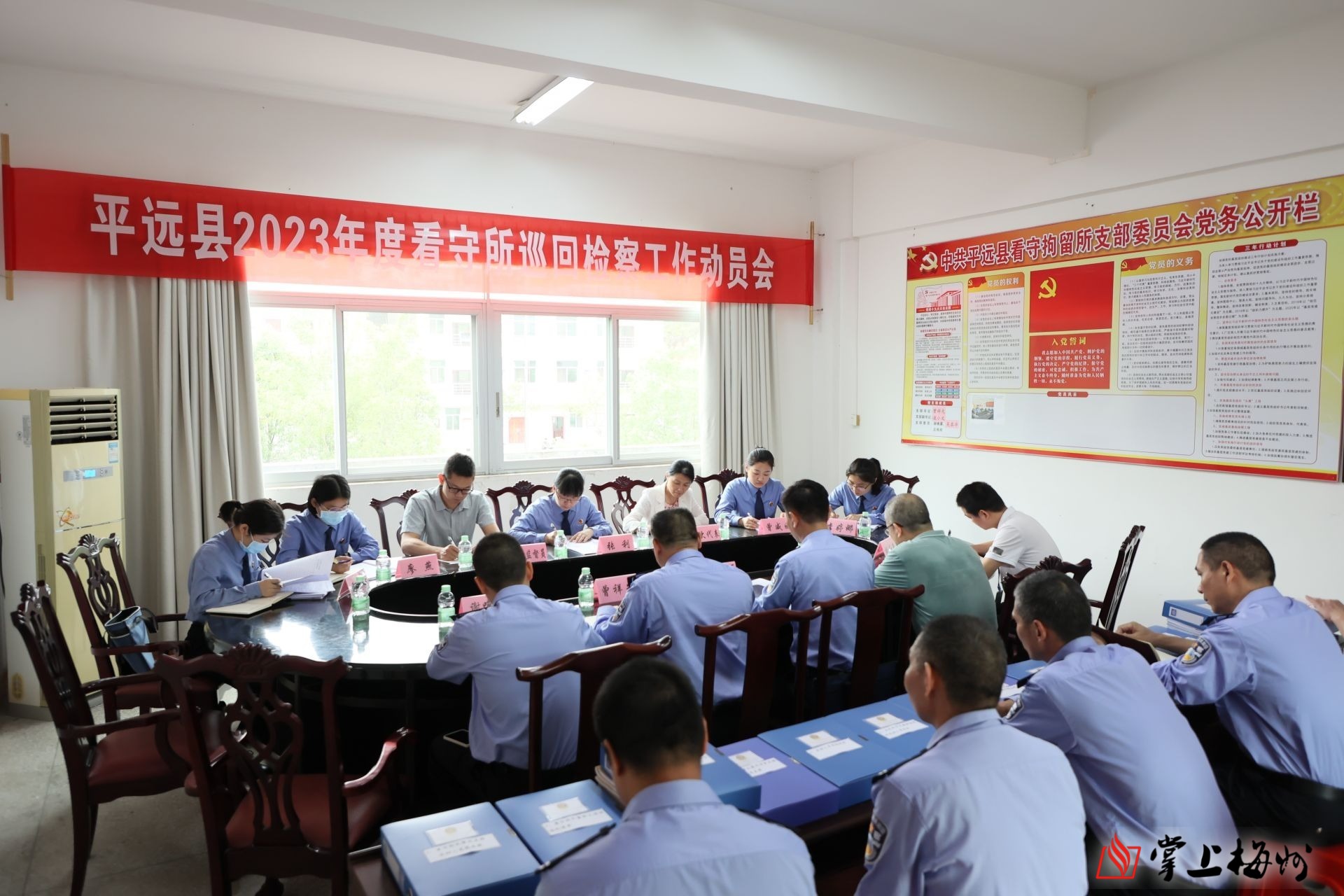 4月23日,平远县2023年度看守所巡回检察工作动员会在平远县看守所召开,会上对本次巡回检察的总体要求、时间安排、工作内容、检察方式和相关要求进行部署。平远县公安局副局长李东作表态发言,平远县检察院副检察长张利围绕深刻认识巡回检察工作的重要意义、正确认识监督与被监督的关系、坚持问题导向、严守各项纪律、依法履职等方面作动员,进一步凝聚共识,共同推动实现监管执法和检察履职双提升。