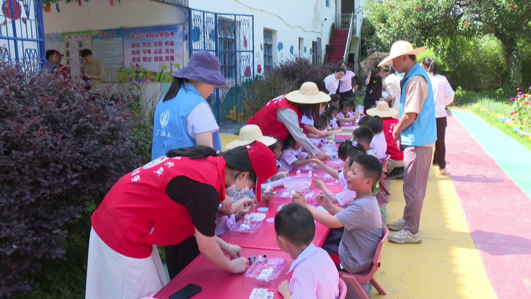 活动现场,伴随着阵阵欢呼声,志愿者们为每一名儿童送上精心挑选的乐器、画笔等礼品,并与孩子们亲切互动,一起拿起画笔,调和色彩,用双手描绘出一个个色彩斑斓、生动有趣的作品。