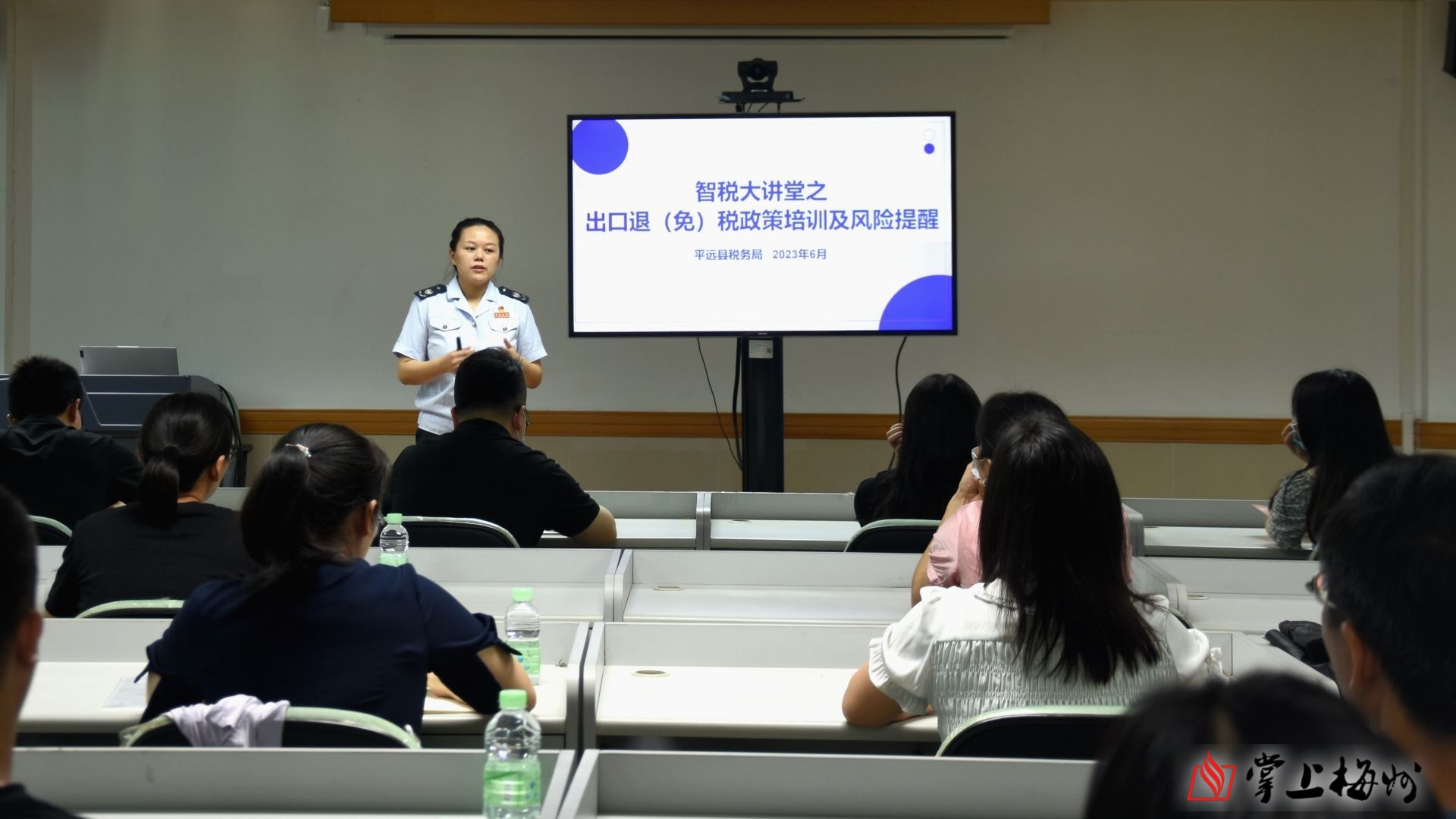 当天,梅州市税务局青年讲师团讲师罗明莉为与会的企业代表们讲解了出口退(免)税的相关政策公告,详细梳理了出口企业备案单证管理新旧政策对比,重点强调了收汇管理事项及操作细节,尤其是针对纳税人在日常申报操作中常出现的问题和困惑,她都逐一在课堂做出剖析和说明。