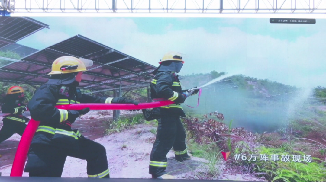 本次演练模拟中坪电站6号方阵光伏区发生火灾并蔓延至周边区域,演练任务从发现火情、确定起火位置、事件报告、启动预案、迅速反应支援、控制火情、现场隐患排查等环节进行了全过程实操演练。演练中参演各方各司其职、响应迅速、配合默契,整个过程部署周密、高效有序,检验了政企联动应急预案的有效性和科学性,提高了工作人员专业抢险技能和安全生产意识,积累了防火救灾实战经验。