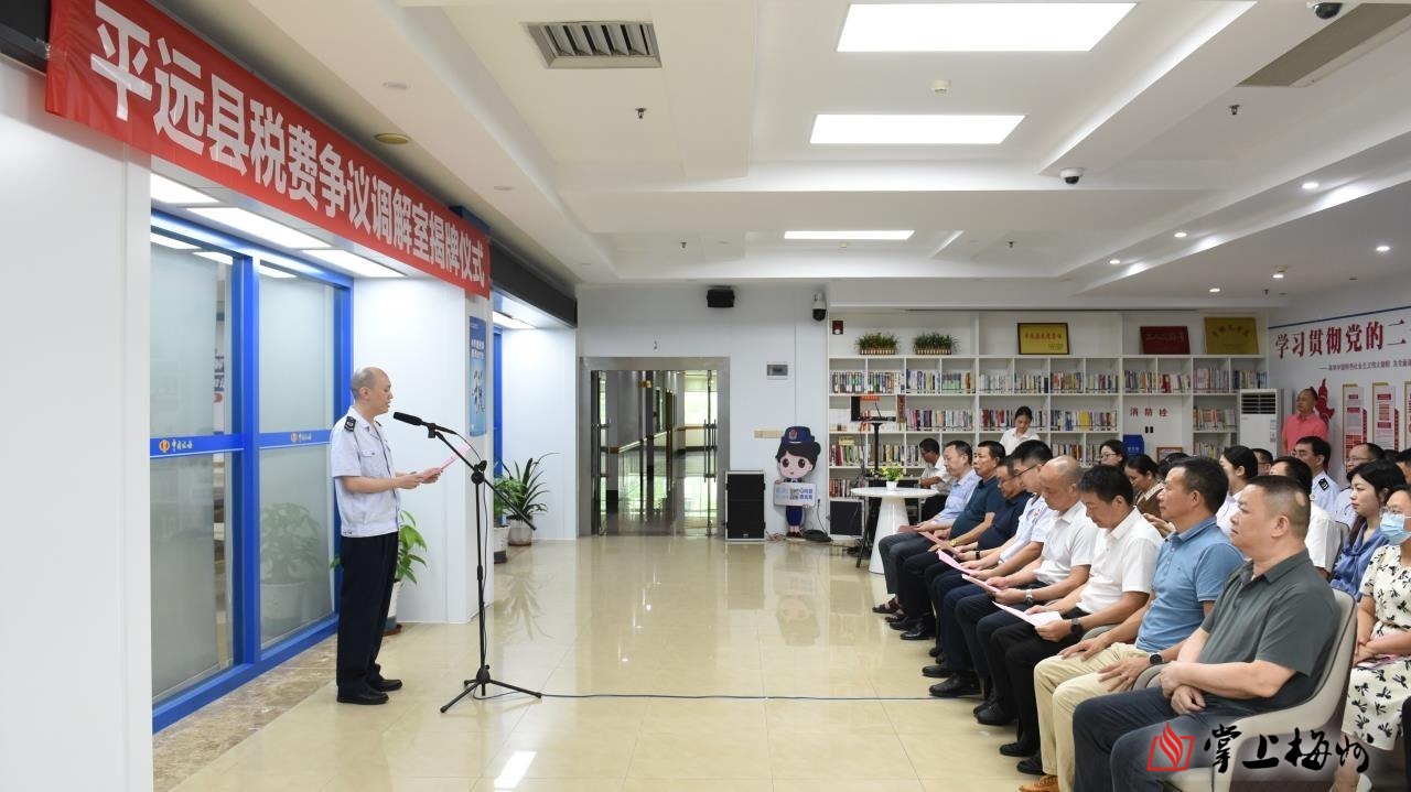 为进一步优化税收法治环境、提升税收执法温度,6月14日,平远县税费争议调解室揭牌仪式在平远县税务局智慧办税厅举行。平远县税务局、司法局、人力资源和社会保障局,木材加工、旅游、小水电行业协会代表共同参与见证。