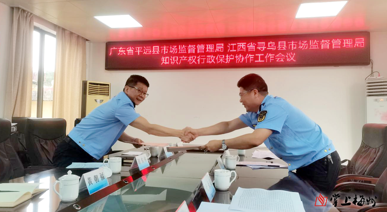 掌上梅州讯 为进一步推进跨区域知识产权保护,优化营商环境,6月19日,平远县市场监管局与江西寻乌县市场监管局就全面开展知识产权保护跨区域协作签订了《知识产权行政保护协作协议书》。