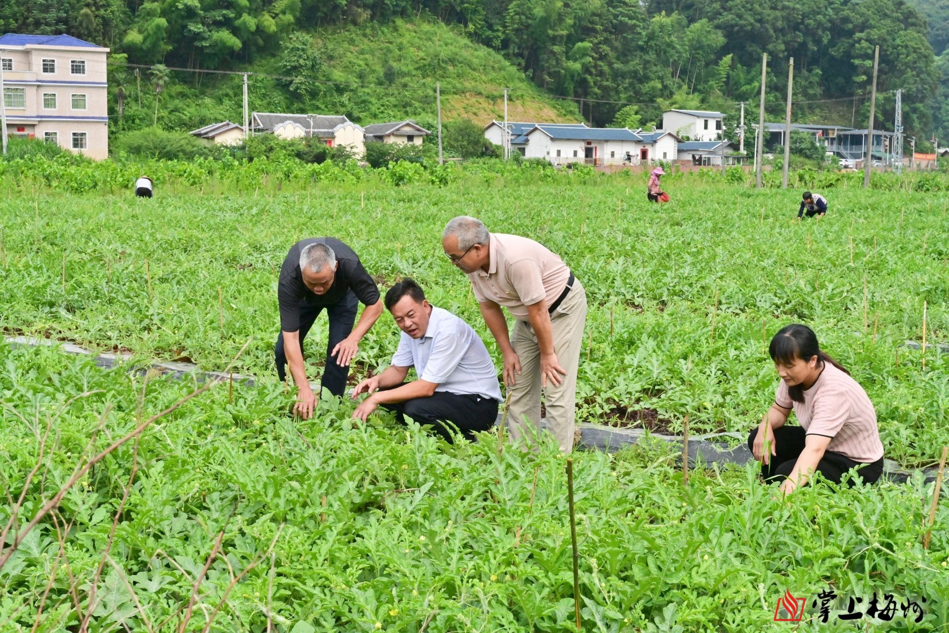 八尺镇黄沙村叁陆陆农业电商基地,工作人员查看西瓜长势。