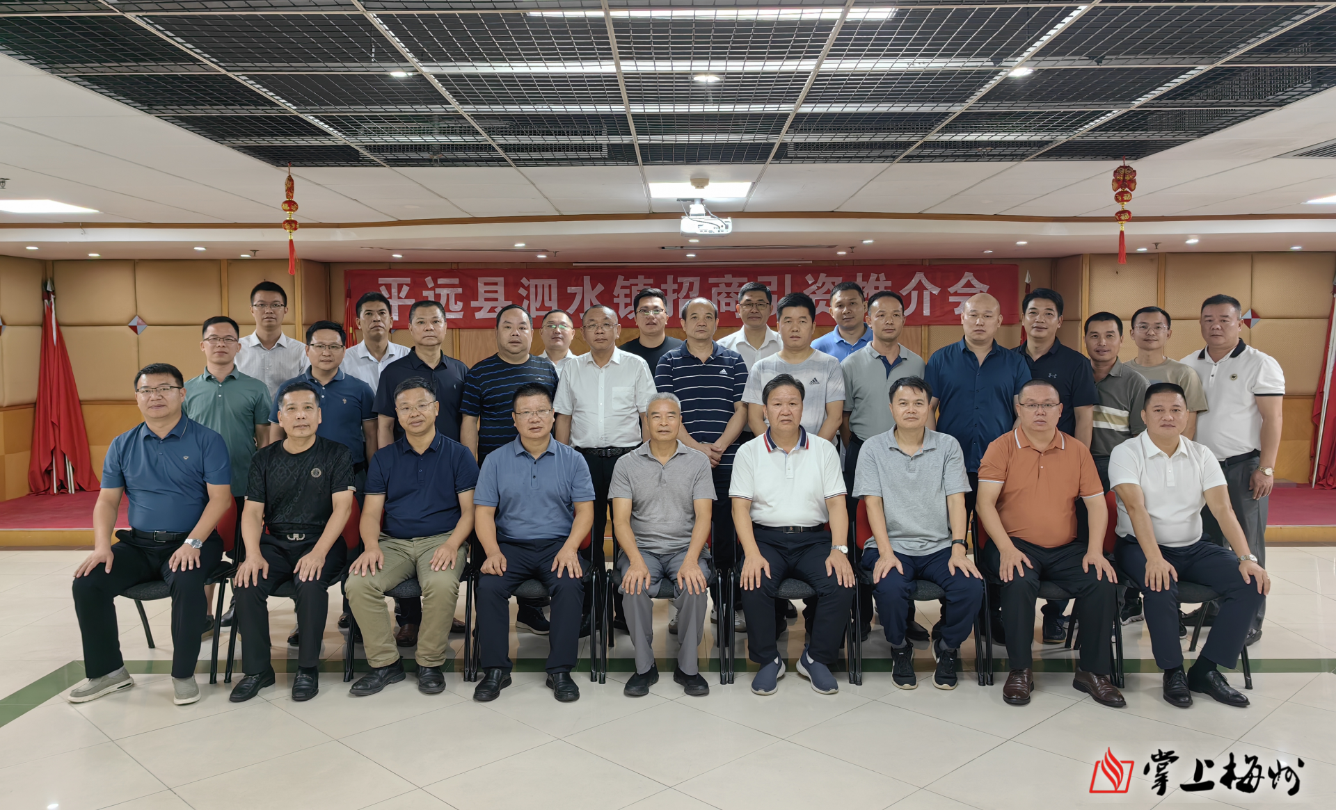2023年7月8日上午,为切实推动“百县千镇万村高质量发展工程”,由泗水镇党委、政府组织的平远县泗水镇招商引资推介会在广州市广东晶通公路工程建设集团有限公司六楼会议室隆重召开。会议由泗水镇党委副书记、镇长谢伟杰主持,县委副书记、县政法委书记陈琼宏,县人大常委会副主任、县总工会主席赖光亮,泗水镇党委书记蔡平以及县驻穗办有关同志出席会议,参会的还有广州、深圳、佛山、东莞、中山、惠州、梅州等区域的泗水乡贤代表共32人。