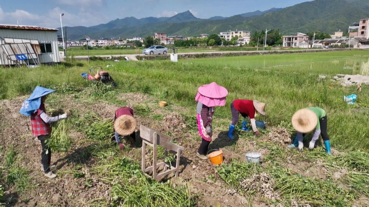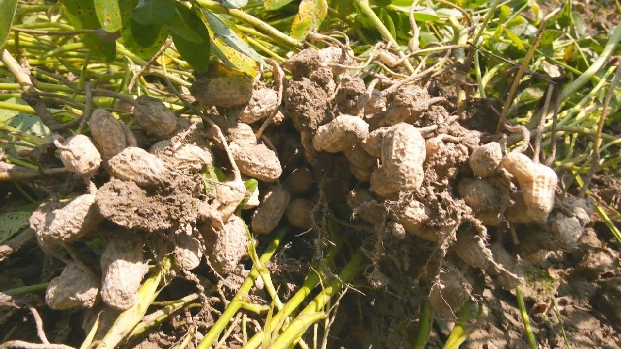 田间管理人员 吴佛香:今年拔了的花生都算可以,1亩干果有600-700斤,这片田拔完就种回甜玉米去,我们是水稻、玉米、花生轮作的。