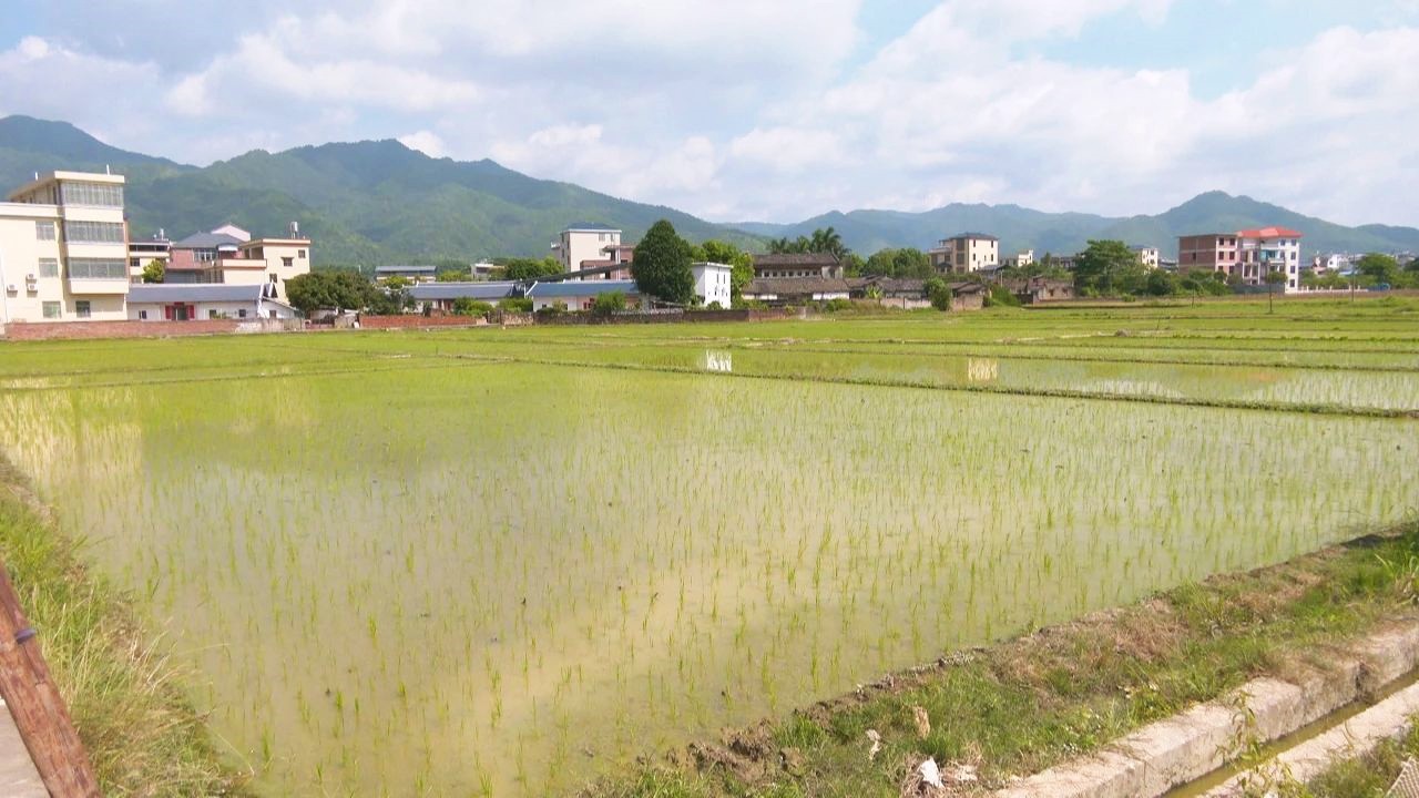 田间管理人员 吴佛香:这里是之前我们比较早种花生的,拔完后种的丝苗米,昨天才刚刚抛完秧,大约50亩。