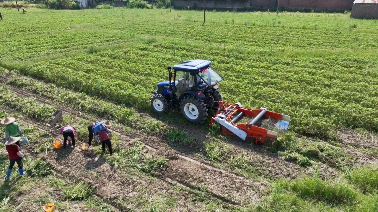农机手 刘正良:夏收一周左右,一小时拔4-5亩,拔好后,就人工叠放好,用摘果机将花生打出来就行。节省了人工,效率也提升很多,拔出来的质量很好,跟人工拔的一样,是比较完整的。