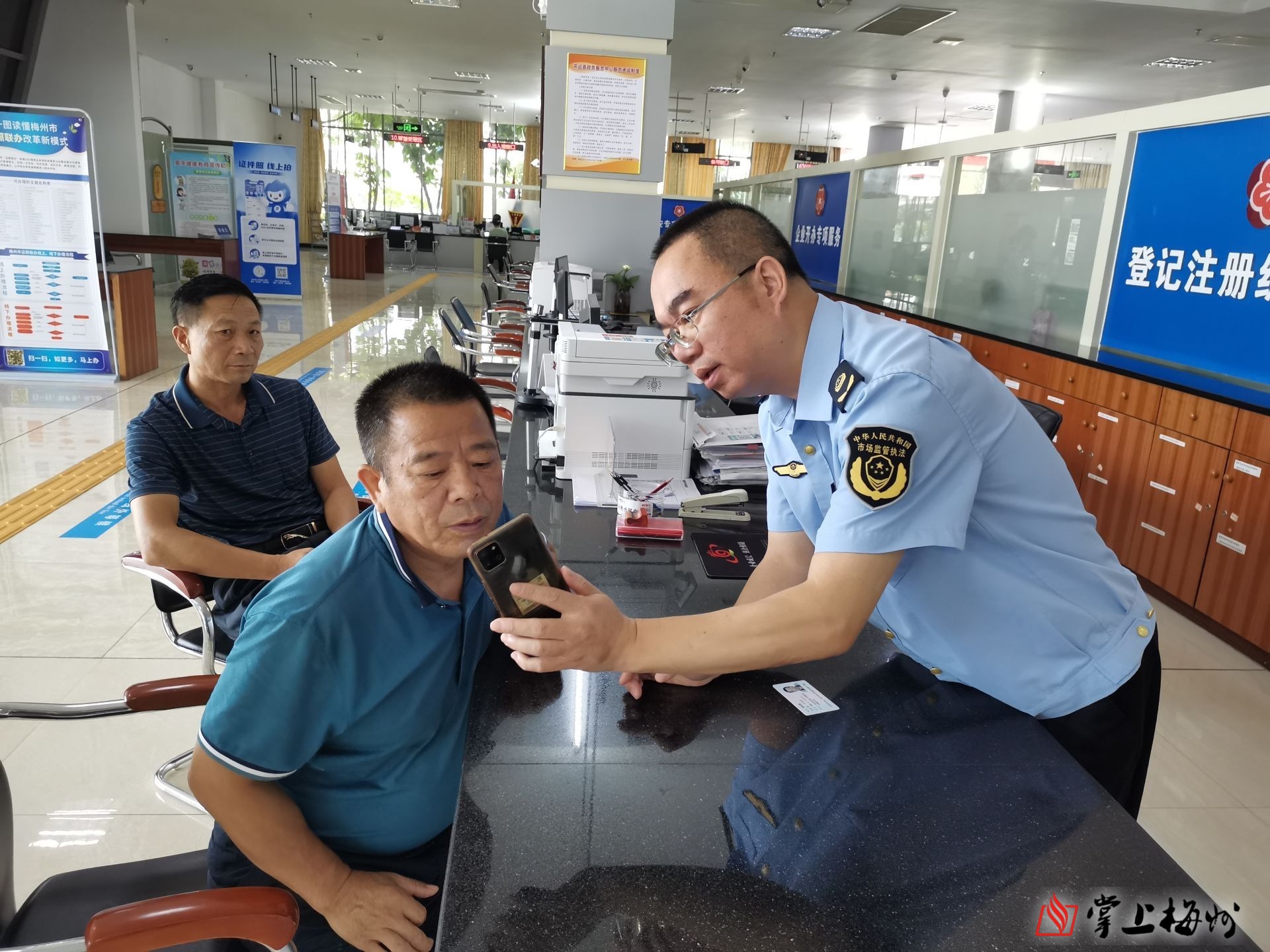 “对的,再往前一点,脸对准手机镜头。”在行政服务大厅的注册登记窗口,县市场监管局注册登记股股长王达正在协助前来登记开办新企业的韩世勇在粤商通App进行刷脸认证,成功提交信息后的几分钟,韩世勇就拿到了营业执照。“我来办理企业设立登记业务,但是不太会用手机操作,工作人员很有耐心地指导我顺利完成操作。”韩世勇对该局工作人员的服务态度表示非常满意。