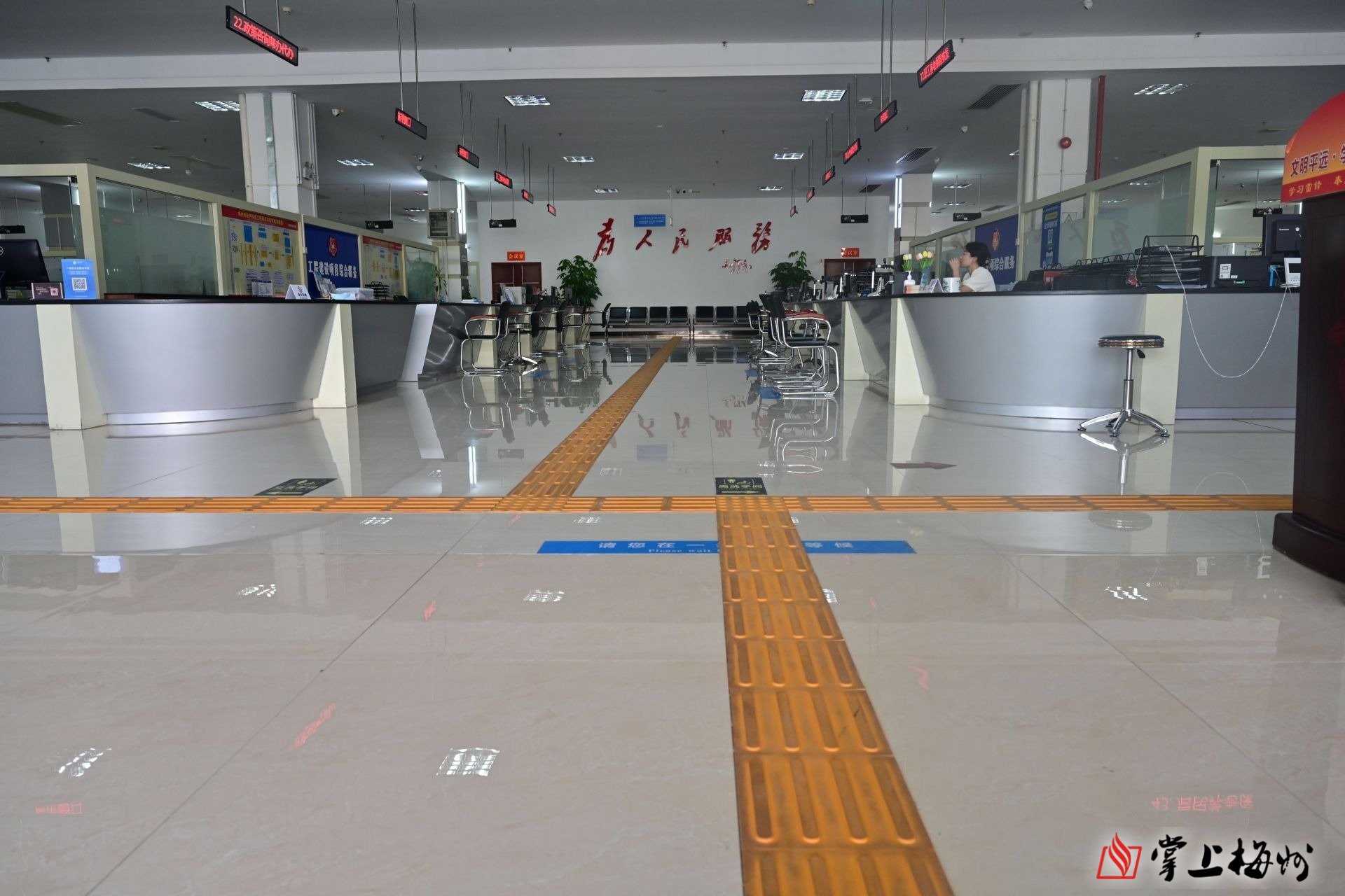 政务中心办事大厅实施无障碍环境改造,铺设了盲道。