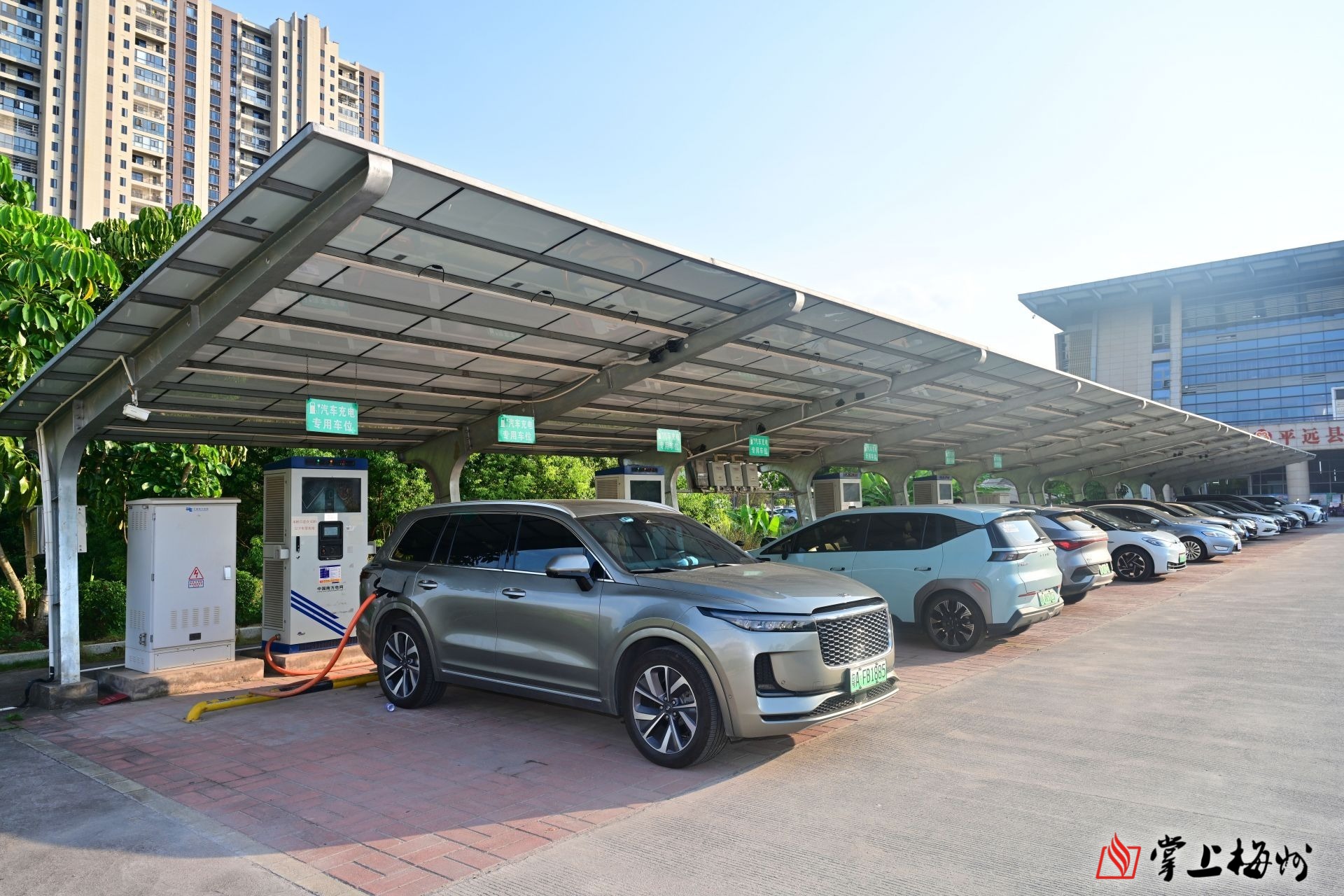 文体中心停车场加装了新能源汽车充电桩、太阳能光伏遮阳棚。