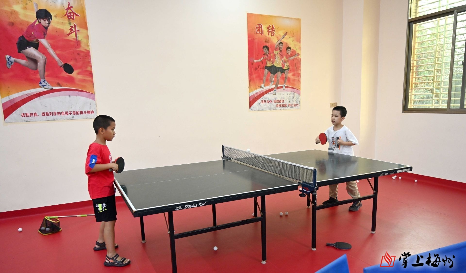 小朋友在练习乒乓球。