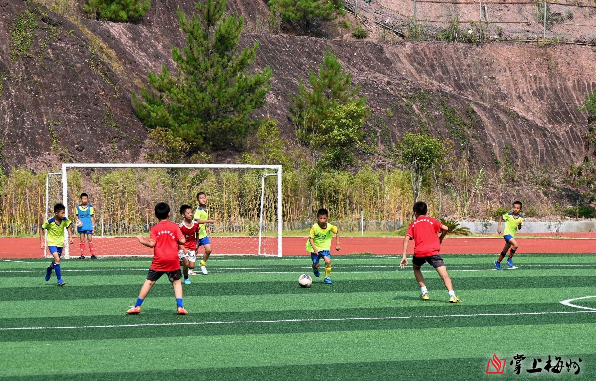 小球员们在进行足球友谊赛。