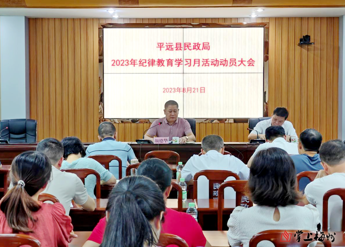 8月21日,平远县民政局召开2023年纪律教育学习月活动动员大会。局党组书记、局长颜德华作动员讲话,党组成员、社会组织党委专职副书记吴永伟主持会议。