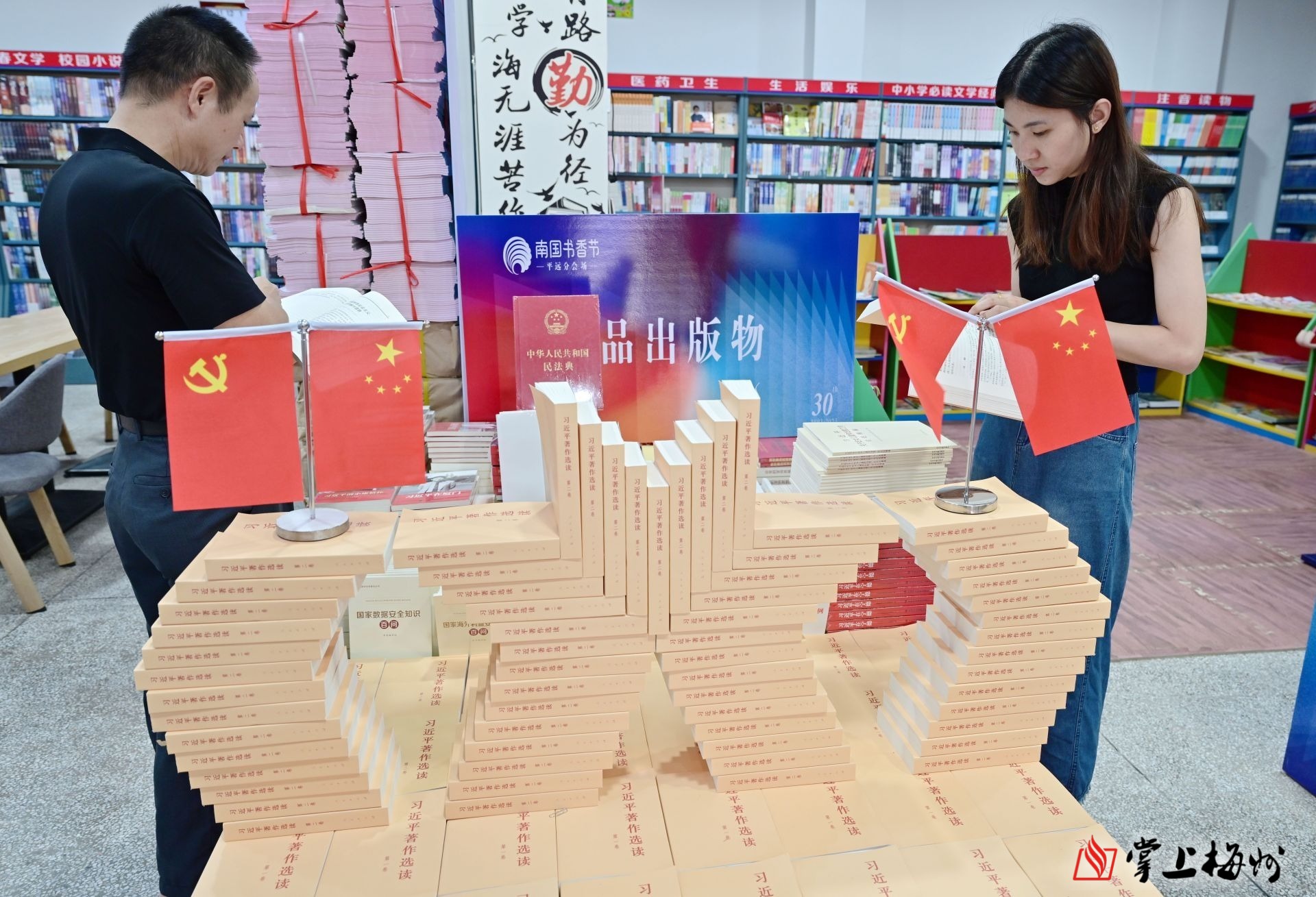 走进平远县新华书店,首先映入眼帘的便是“学习贯彻习近平新时代中国特色社会主义思想主题教育图书”展陈专区。记者看到,《习近平著作选读》第一卷、第二卷被整齐摆放在显眼位置,吸引了不少读者驻足阅读。