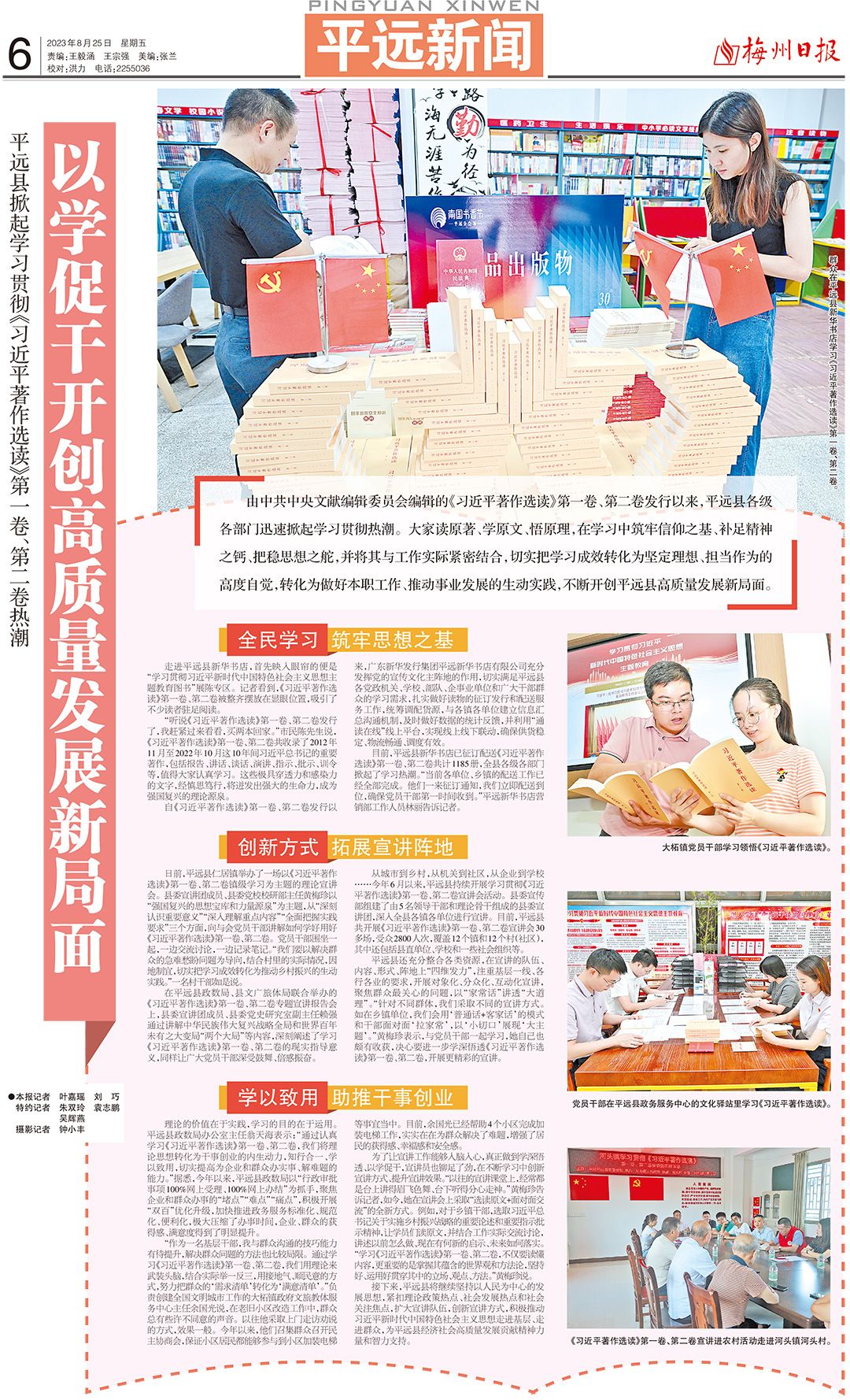 目前,平远县新华书店已征订配送《习近平著作选读》第一卷、第二卷共计1185册,全县各级各部门掀起了学习热潮。“当前各单位、乡镇的配送工作已经全部完成。他们一来征订通知,我们立即配送到位,确保党员干部第一时间收到。”平远新华书店营销部工作人员林丽告诉记者。