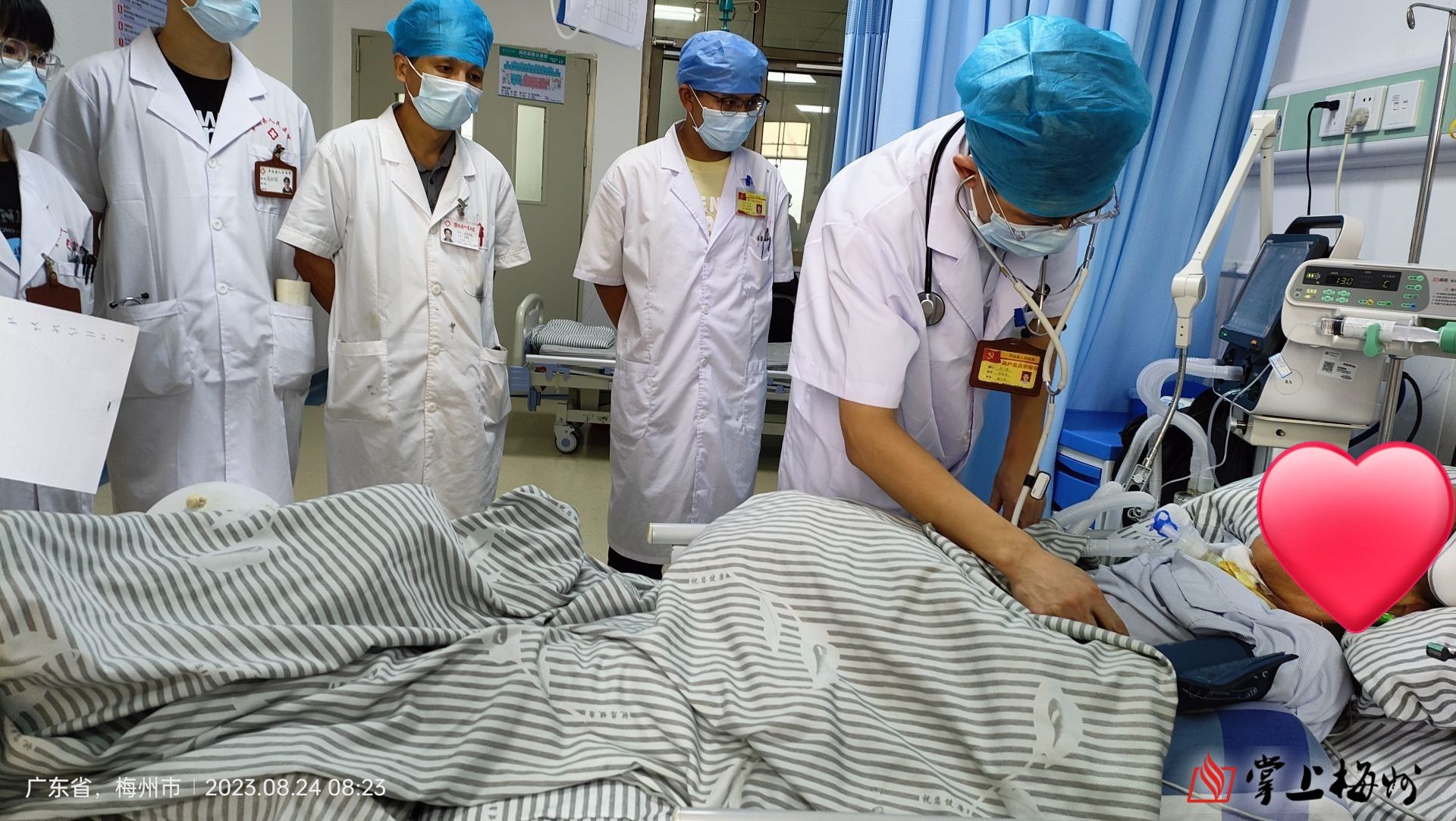 林柏青(右一)对危重患者进行科室大查房。(受访者供图)