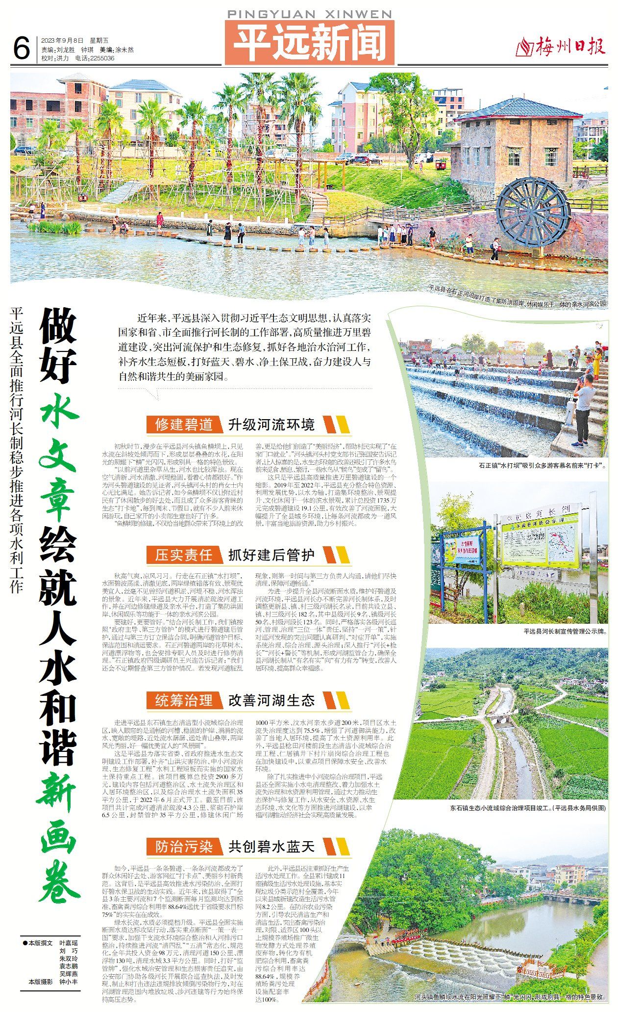 如今,平远县一条条碧道、一条条河流都成为了群众休闲好去处、游客网红“打卡点”、美丽乡村新典范。这背后,是平远县高效推进水污染防治、全面打好碧水保卫战的生动实践。近年来,该县取得了“全县3条主要河流和7个监测断面每月监测均达到标准、畜禽粪污综合利用率88.64%远优于省级要求目标75%”的实实在在成效。