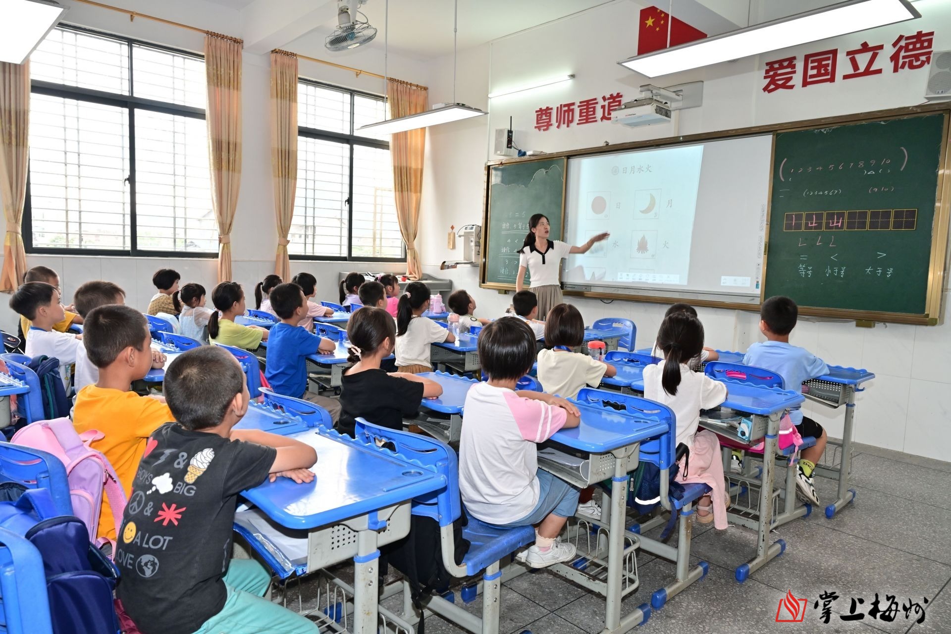 石正中心小学西湖校区新建的“南沙教学楼”里,老师在给学生上课。