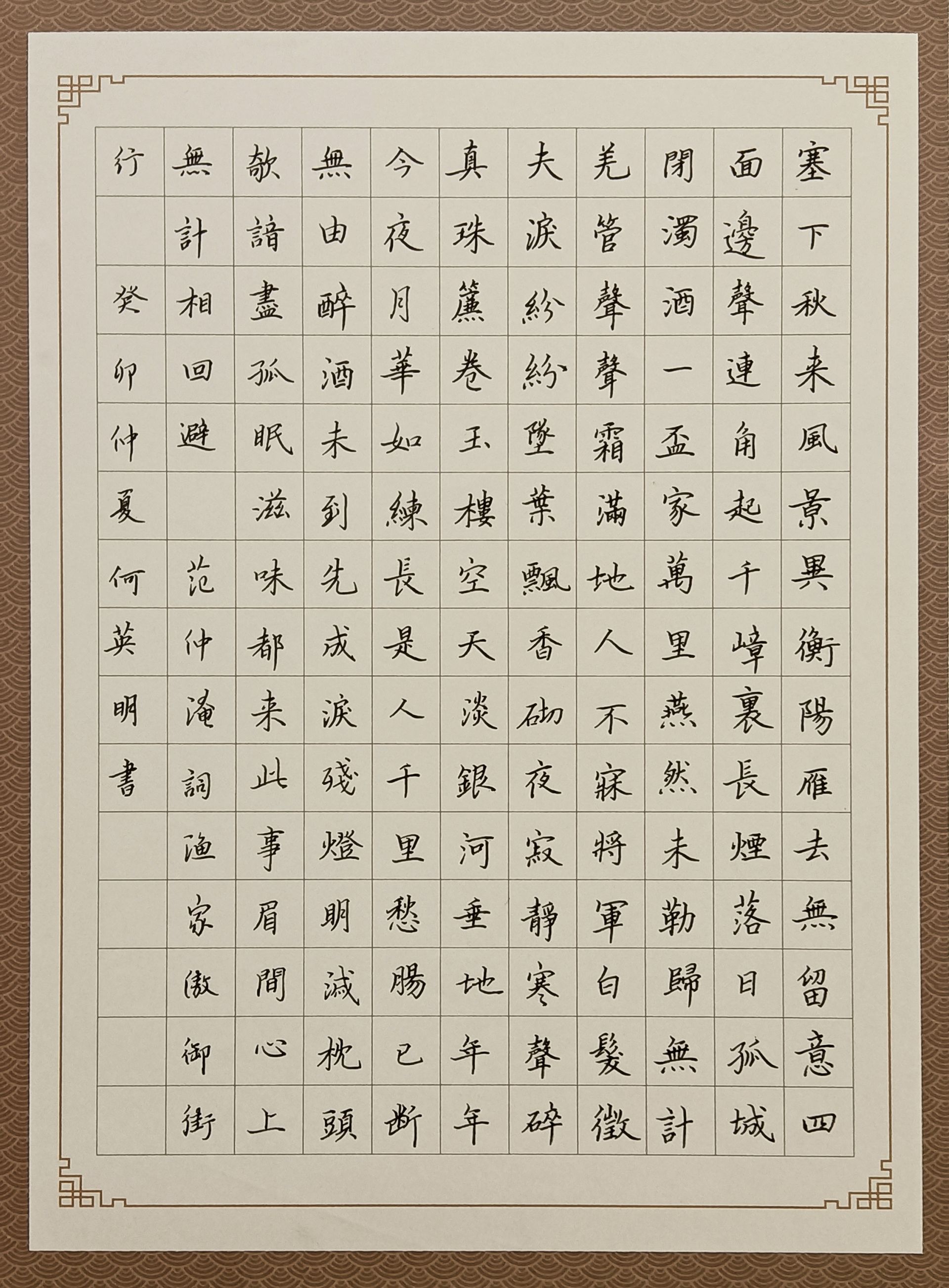 △《塞下秋来》硬笔书法 何英明 梅青中学(教师组)
