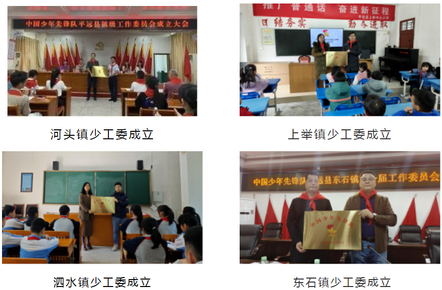 为深入学习贯彻习近平总书记关于少年儿童和少先队工作的重要论述,认真落实《中共中央关于全面加强新时代少先队工作的意见》《关于构建新时代少先队社会化工作体系的实施意见的通知》精神,加快构建新时代少先队社会化工作体系,夯实党建引领、全团带队机制,提升少先队社会化工作水平,平远县12个乡镇全面建立少工委,形成了校内外资源互补、有机联动,少年儿童普遍受益的少先队工作新局面。