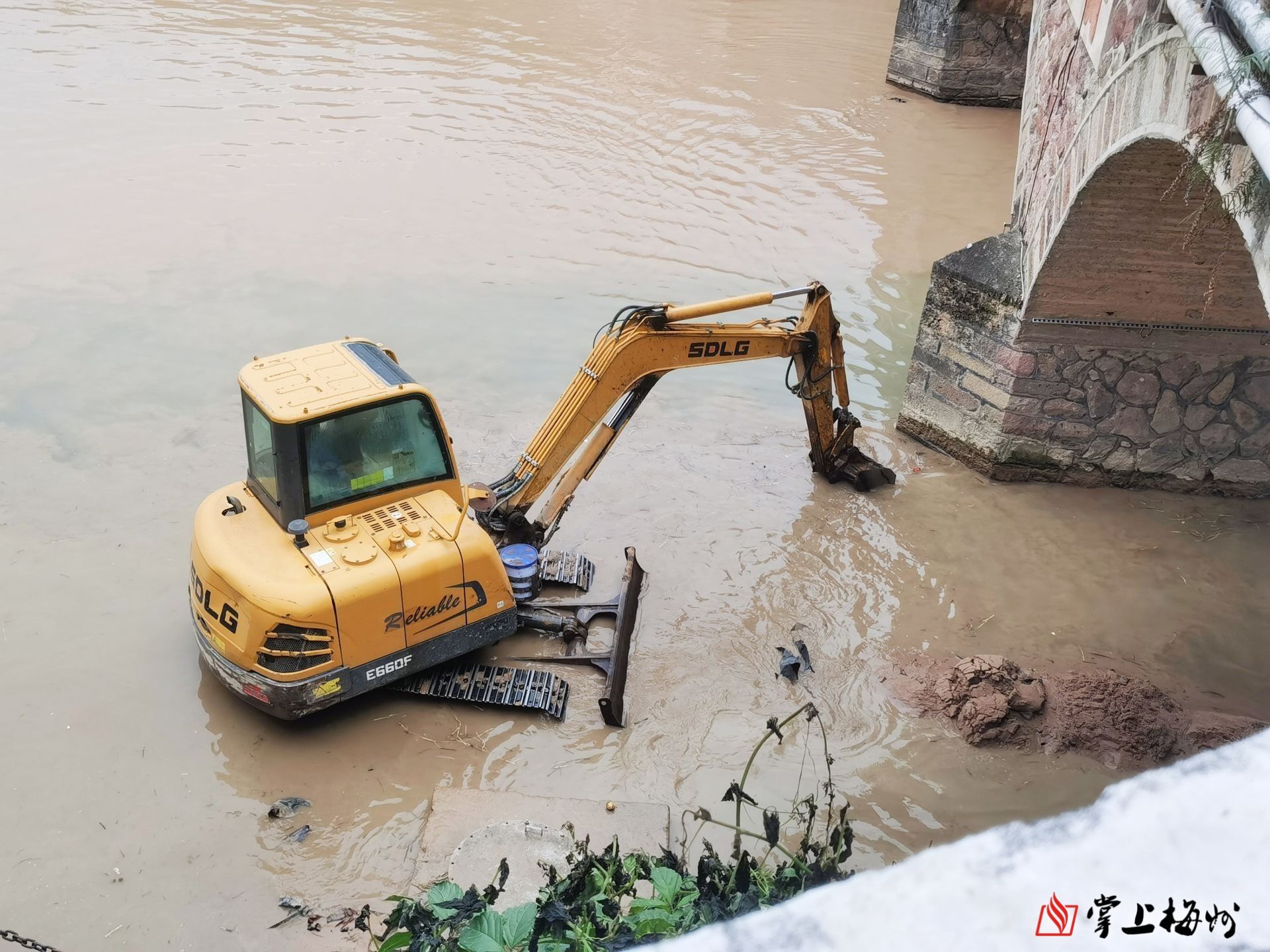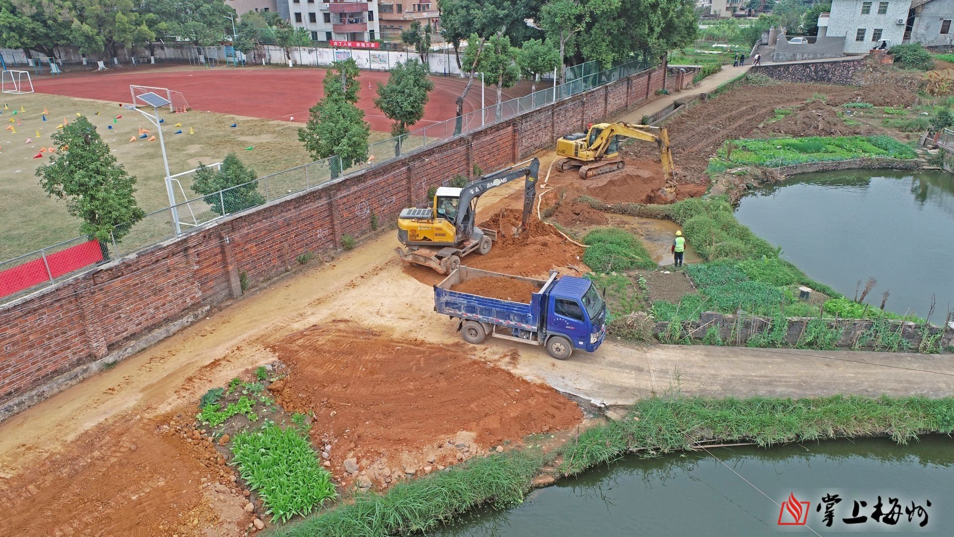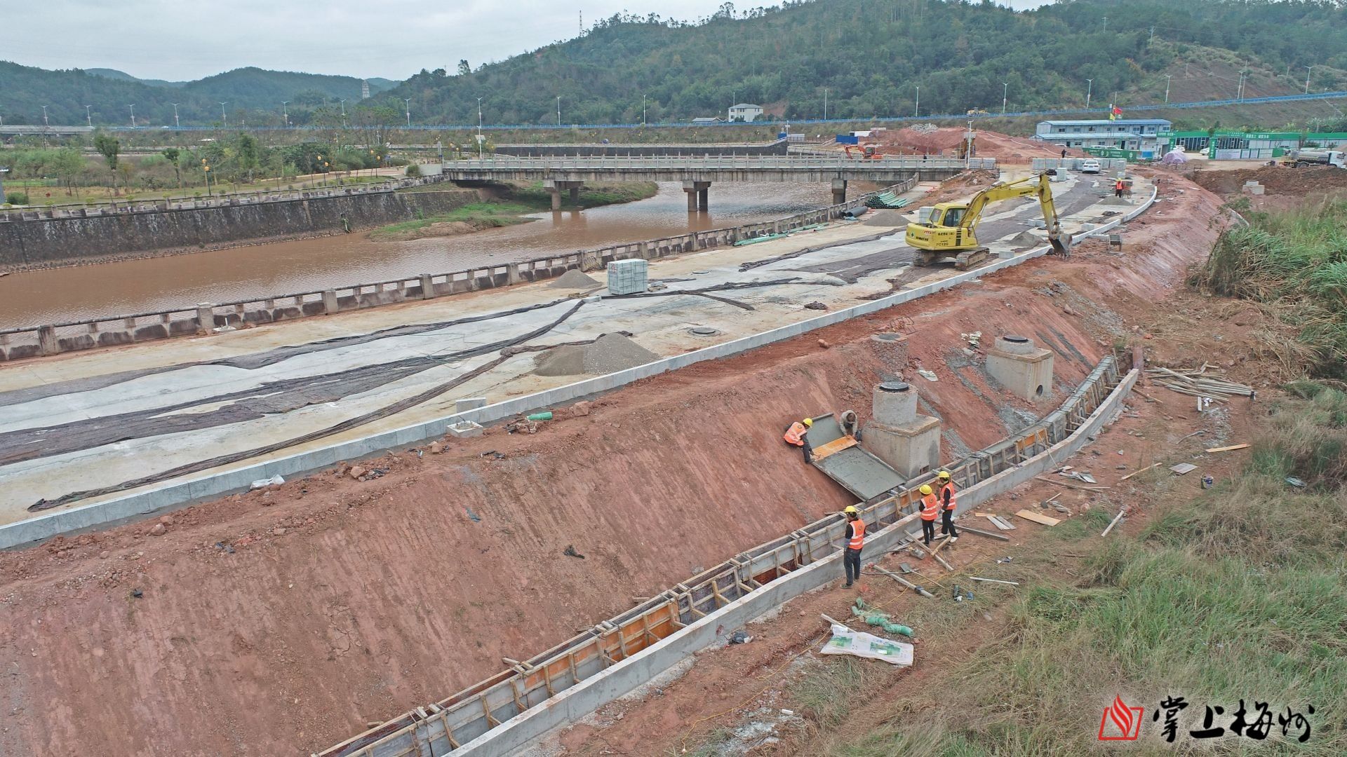 仁居河中小河流治理施工现场。