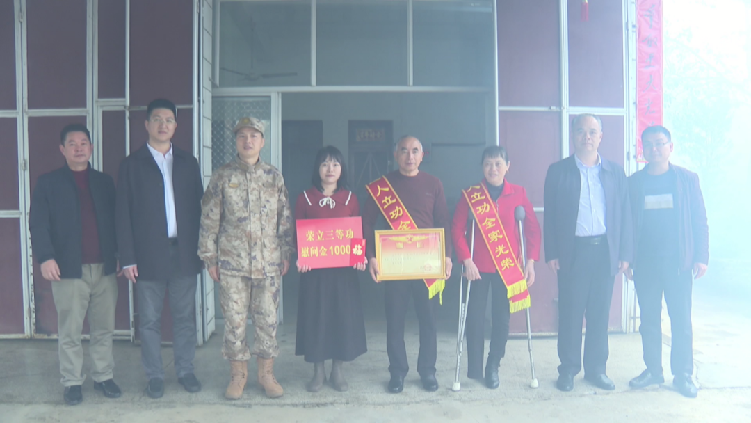 2月1日,平远县人武部、县退役军人事务局、东石镇联合为荣立三等功的平远县现役军人刘宇粱家庭送去立功喜报,让军人军属共享尊崇荣光。平远县人武部政委郑继林参加活动。