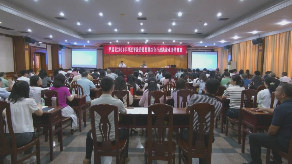 8月30日,平远县委依法治县办、县司法局组织举办2024年习近平法治思想暨综合行政执法工作业务培训班,进一步加强执法队伍建设,不断提升平远县行政执法单位执法能力和水平。平远县副县长、县公安局局长陈瑛作开班动员讲话,各镇及县行政执法单位业务分管领导、执法业务人员,各司法所人员等参加培训。