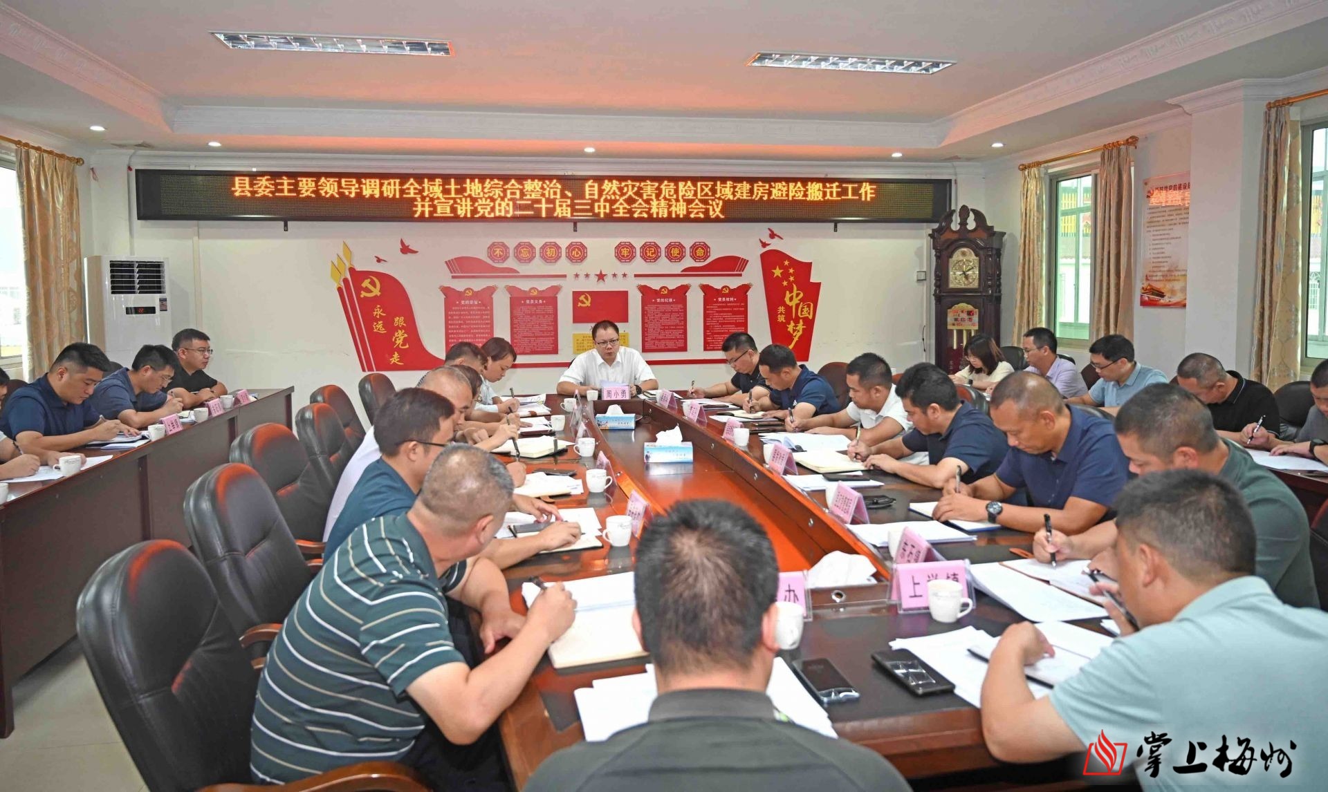 周小勇指出,党的二十届三中全会将深化土地制度改革作为完善城乡融合发展体制机制的一项重要内容,明确了新征程深化农村土地制度改革的方向重点,为进一步持续激发农业农村发展活力,促进城乡共同繁荣发展提供重要保障。全域土地综合整治工作涉及面广、政策性强、关注度高,是推动经济发展、事关群众切身利益的一项重要举措。全县各级各部门一要强化思想认识。要主动担当作为,充分认识做好自然灾害危险区域建房户避险搬迁的重要性和必要性,结合全域土地综合整治开展农村建设用地与农用地整理,分批有序推进避险搬迁,切实保障人民群众生命财产安全。二要强化任务攻坚。对县域内建设用地、潜力地块、农户参与意愿等情况进行全面调查摸底,对镇域内可连片整治耕地范围进行登记造册,完善工作指引、实施路径相关细则,全力推进全域土地综合整治工作。三要强化避险搬迁。结合“6·16”受灾群众安置,建立长期实体化运作专班,全力推进镇区安置点建设,精准分类受灾群众搬迁意愿、风险等级,逐年逐批搬迁农村受山洪地灾、削坡建房潜在威胁区域人员。四要强化政策学习。重点围绕城乡建设用地增减挂钩项目工作指引、异地搬迁集中安居方案、建设用地及农用地整理实施路径等配套政策深入细学,理清工作流程和方法。五要强化宣传引导。加强对群众的政策宣传与解读,明确增减挂钩、农用地整理、避险搬迁等工作的正面效应,增强群众“主人翁”意识和参与度。六要强化改革创新。全面落实党的二十届三中全会部署,站在高质量发展的大局,创新工作方式方法,探索出一条自然灾害危险区域建房避险搬迁和农村综合改革的新路,努力实现村民受益、产业发展、政府兴业多方共赢的发展目标。