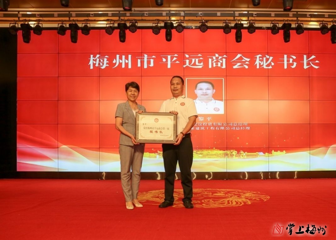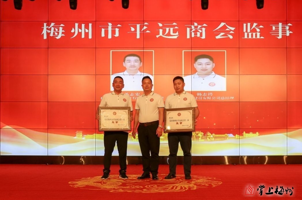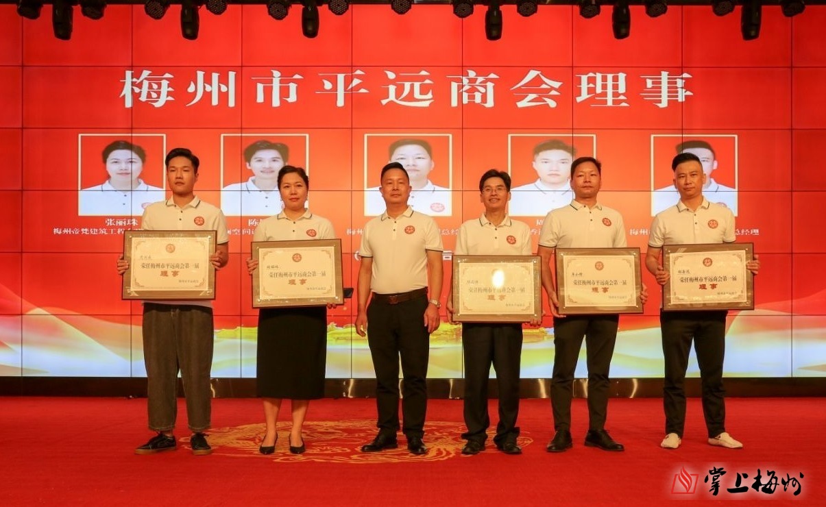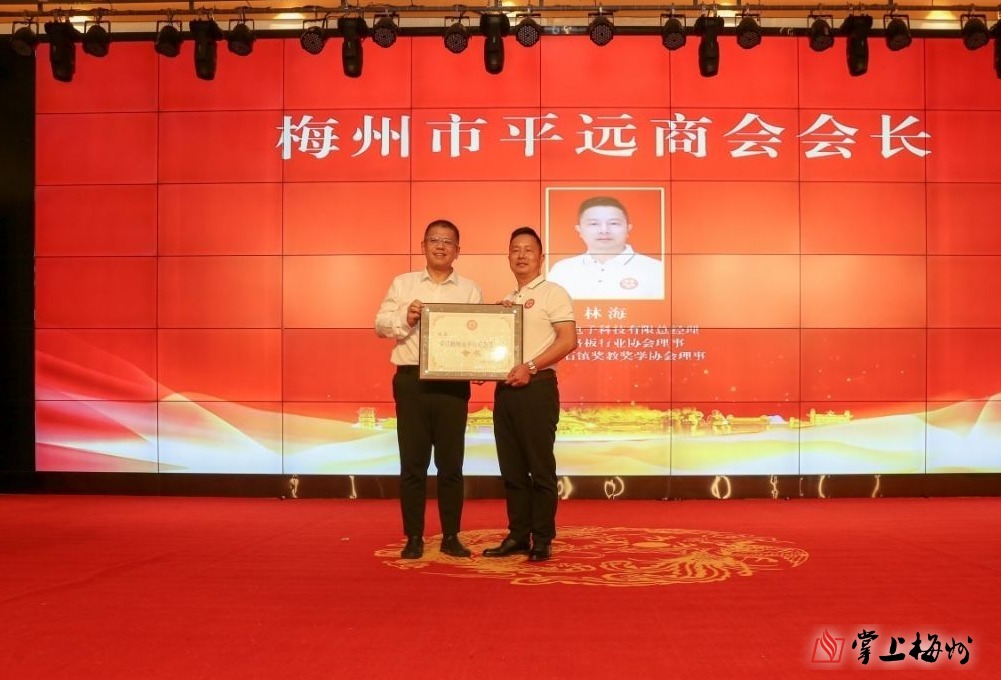 大会宣布了梅州市平远商会第一届理事会当选名单,林海当选为梅州市平远商会会长,与会领导分别为当选成员颁发牌匾,对他们的当选表示热烈祝贺。