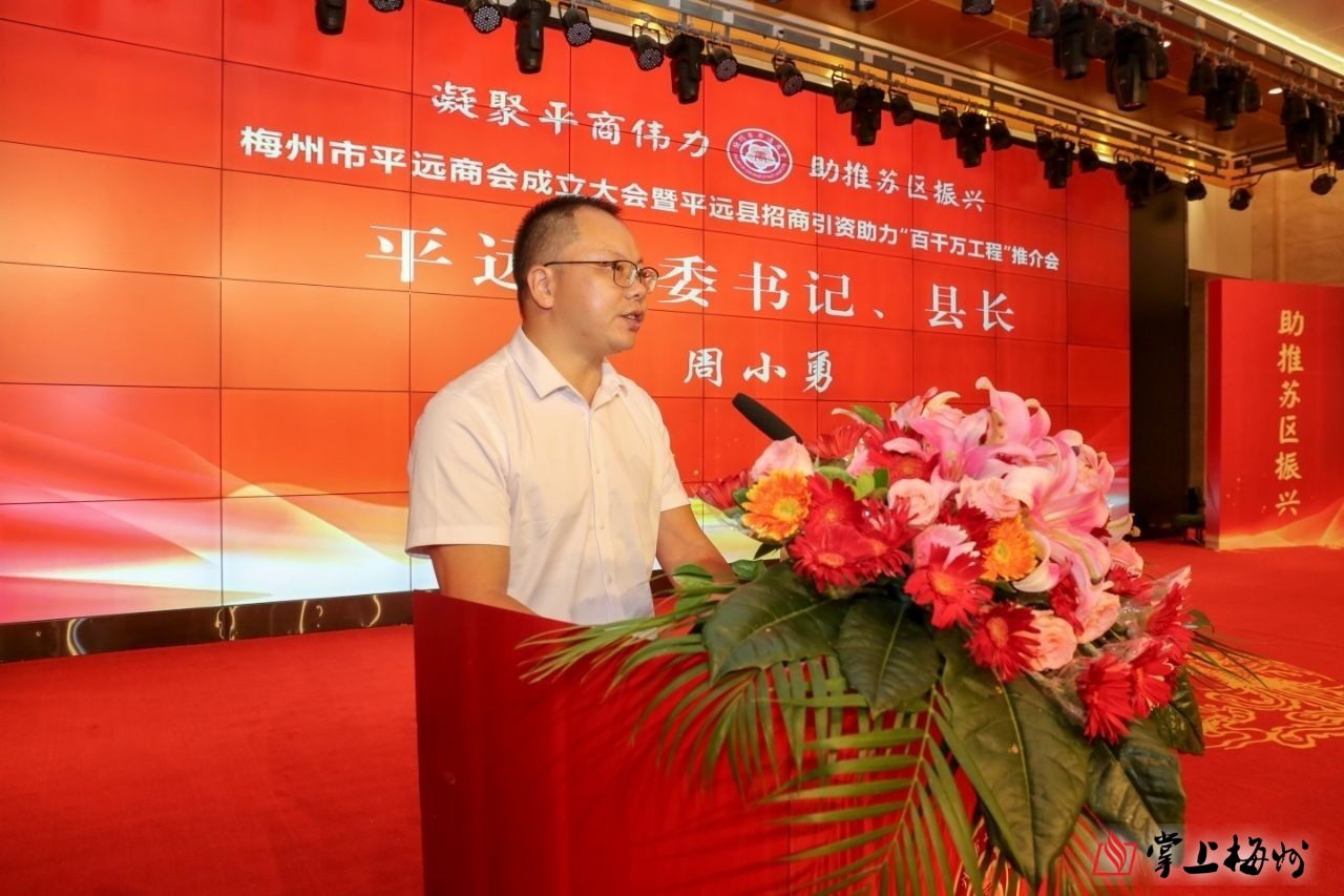 周小勇代表平远县委、县政府,向莅临大会的领导、嘉宾、企业家表示热烈欢迎,向长期以来关心支持平远经济发展的社会各界表示衷心感谢。他说,商会是联络乡情、团结同乡、凝聚人心的纽带,希望梅州市平远商会始终把服务乡贤、企业作为工作的出发点和落脚点,以创建“四好”商会、打造国内一流商会品牌为目标,把“平远人”这块牌子擦得更亮、打得更响。希望广大乡贤、企业家们当好家乡发展的“推介者”、产业发展的“建设者”、灾后重建的“参与者”,同心讲好平远故事,同力展示平远形象,汇平商之力增全域之光、为全局添彩。