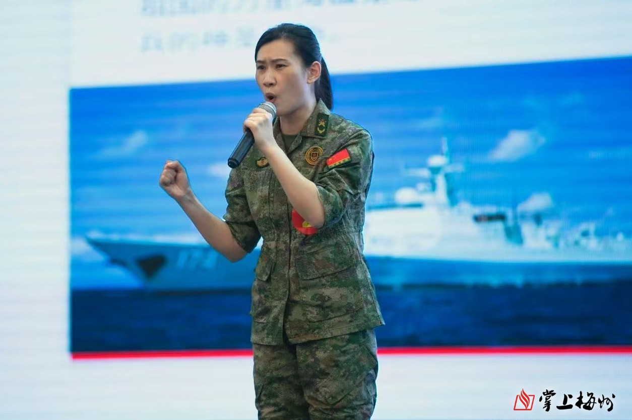在刚刚结束的广东省军区“感悟伟大成就 奋进强军之路”主题演讲比赛中,有这么一位基层女专武干部,靠着自己精彩的演讲和超常的发挥,从一众男选手中脱颖而出,获得了全省总分第5的好成绩,荣获三等奖。她就是黄丹萍,梅州市平远县长田镇人民武装部部长。